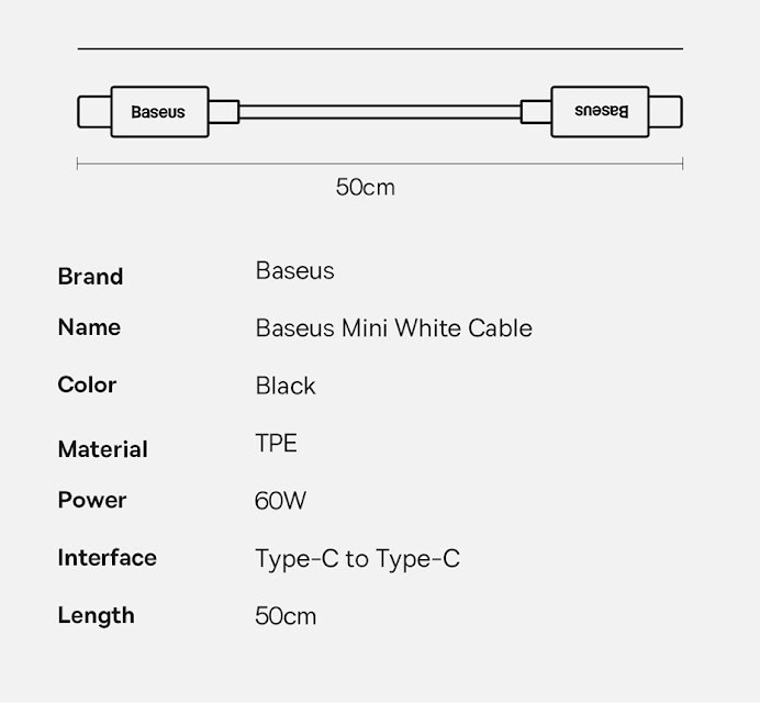 Kèm Cáp Sạc Type-C to Type-C: Đi kèm cáp sạc nhanh Baseus Xiaobai 60W dài 50cm.