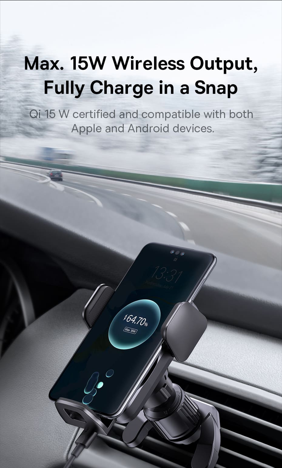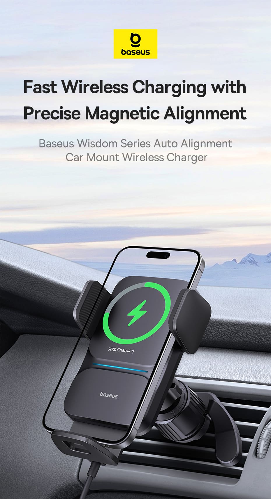 Baseus Wisdom Auto Alignment Car Mount Wireless Charger là bộ đế giữ điện thoại kiêm sạc không dây được thiết kế thông minh với tính năng căn chỉnh tự động, mang đến trải nghiệm sử dụng rảnh tay an toàn và tiện lợi khi lái xe. Phù hợp với mọi loại xe, đây là phụ kiện lý tưởng để giữ điện thoại cố định và luôn sạc đầy pin trong suốt hành trình.
