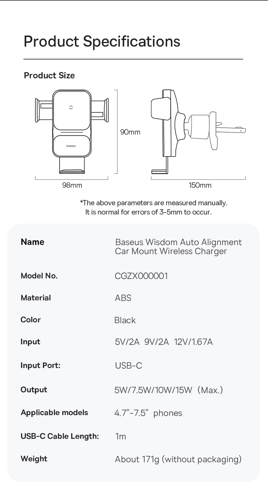 | Tên | Bộ Đế Giữ Điện Thoại Baseus Wisdom Auto Alignment Car Mount Wireless Charger(QI 15W) |