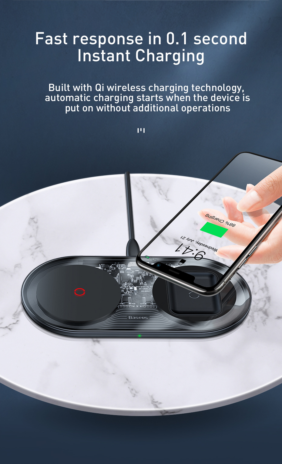 Bộ sạc không dây 2 trong 1 Baseus Simple Wireless Charger Turbo Edition cho phép bạn sạc đồng thời điện thoại và tai nghe AirPods Pro trên cùng một đế. Với công suất sạc nhanh lên tới 20W, sản phẩm mang lại hiệu suất vượt trội trong một thiết kế tinh gọn, sang trọng và hiện đại.