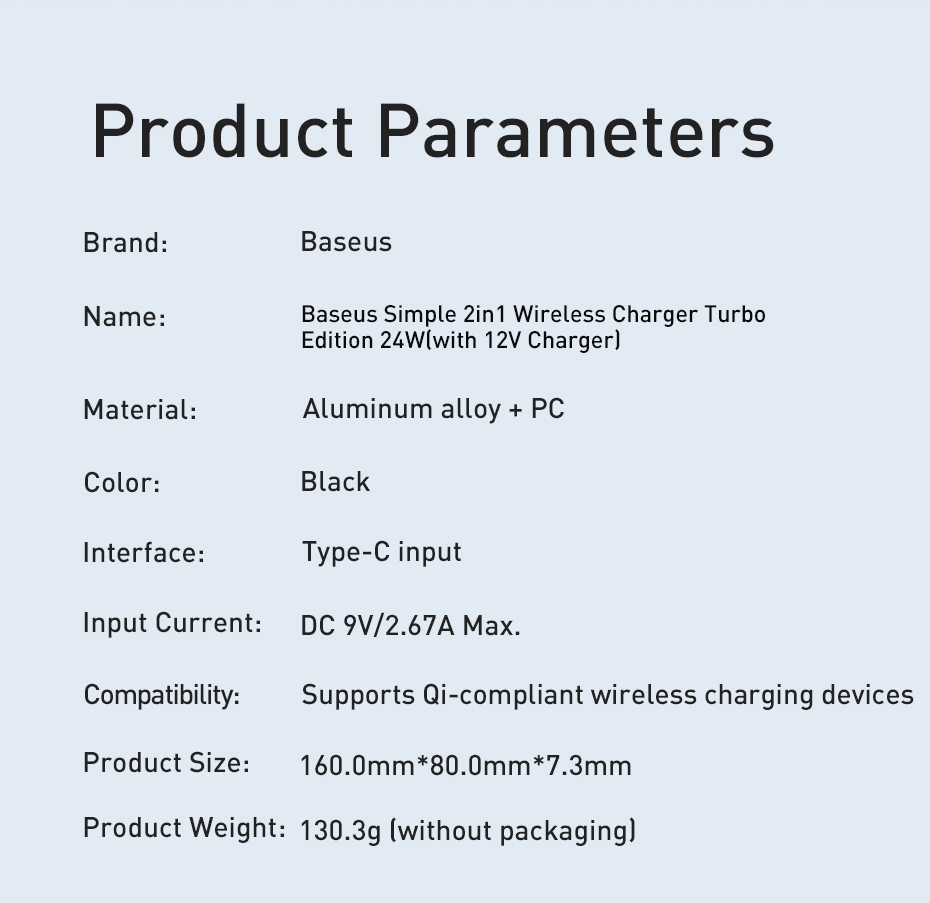 | Tên | Baseus Simple Wireless Charger Turbo Edition |