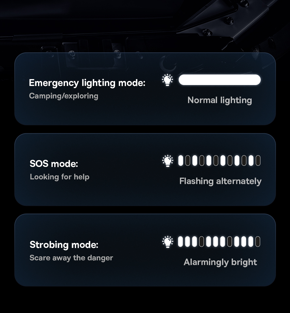 🔦 Đèn LED Cứu Hộ Khẩn Cấp: Tích hợp đèn LED siêu sáng với 3 chế độ: Chiếu sáng thông thường, Chớp tín hiệu SOS, và Chớp nháy cảnh báo. Đây là cứu tinh của bạn trong những tình huống khẩn cấp cần ánh sáng hoặc báo hiệu an toàn vào ban đêm.