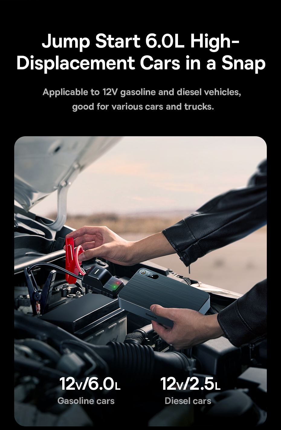 Đối phó với những tình huống ắc quy cạn kiệt một cách mạnh mẽ và chuyên nghiệp với Bộ kích bình Baseus Super Energy Pro+ 1200A. Với dòng đỉnh cực đại 1200A, thiết bị này đủ sức khởi động cả những chiếc xe có dung tích xi lanh lớn, là công cụ cứu hộ không thể thiếu trong mỗi chuyến đi.