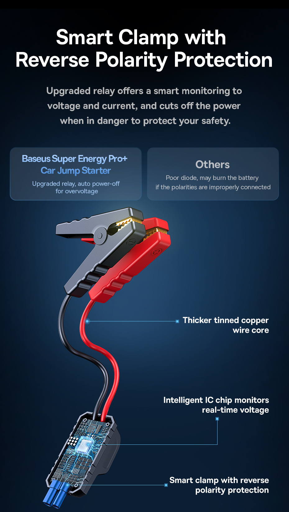 Kẹp ắc quy thông minh an toàn: Cung cấp nhiều lớp bảo vệ trong quá trình kích bình.