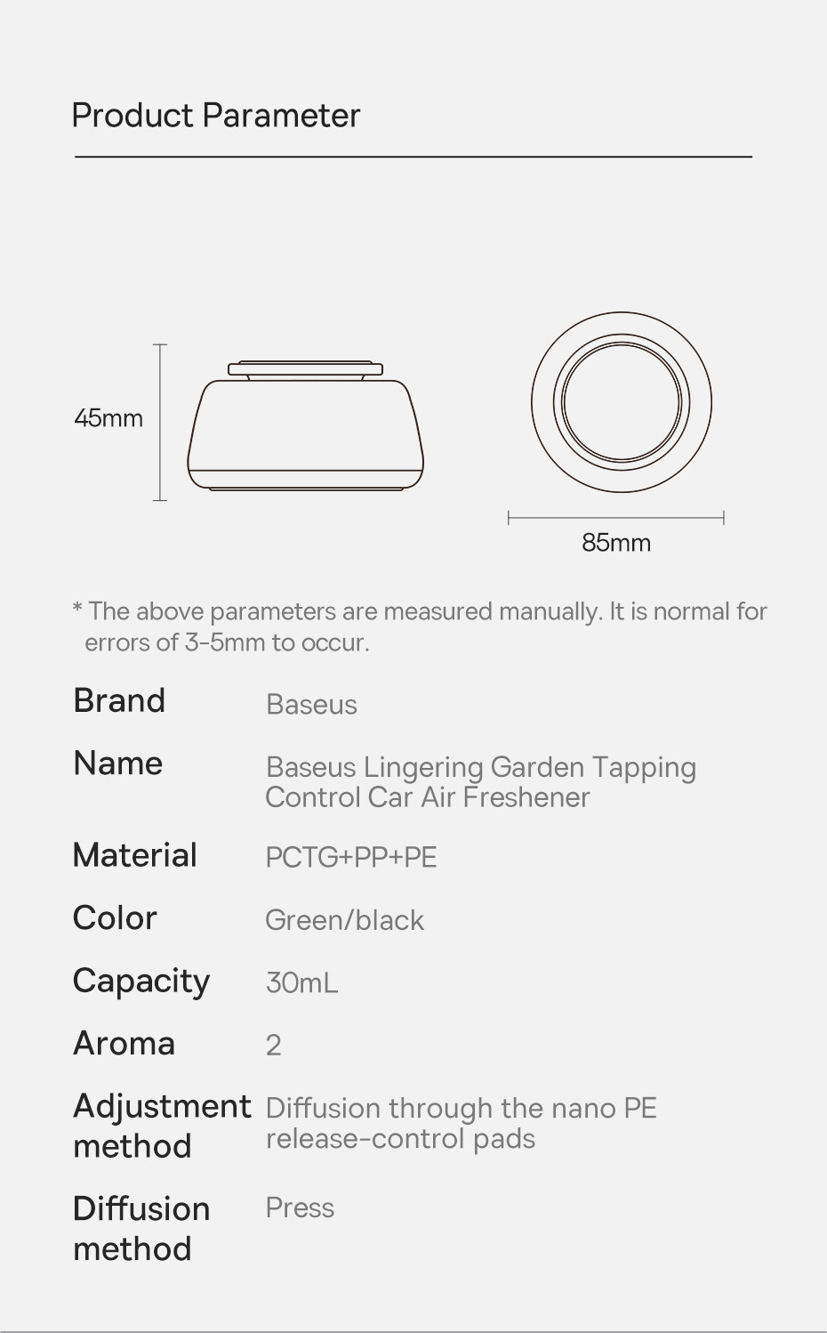 | Tên | Baseus Lingering Garden Tap-Control Car Aromatherapy Diffuser |