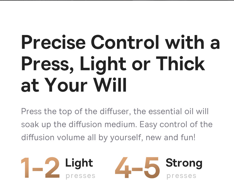 Có thể điều chỉnh được độ tỏa hương: Chỉ cần nhấn lên bề mặt của sản phẩm để điều khiển.