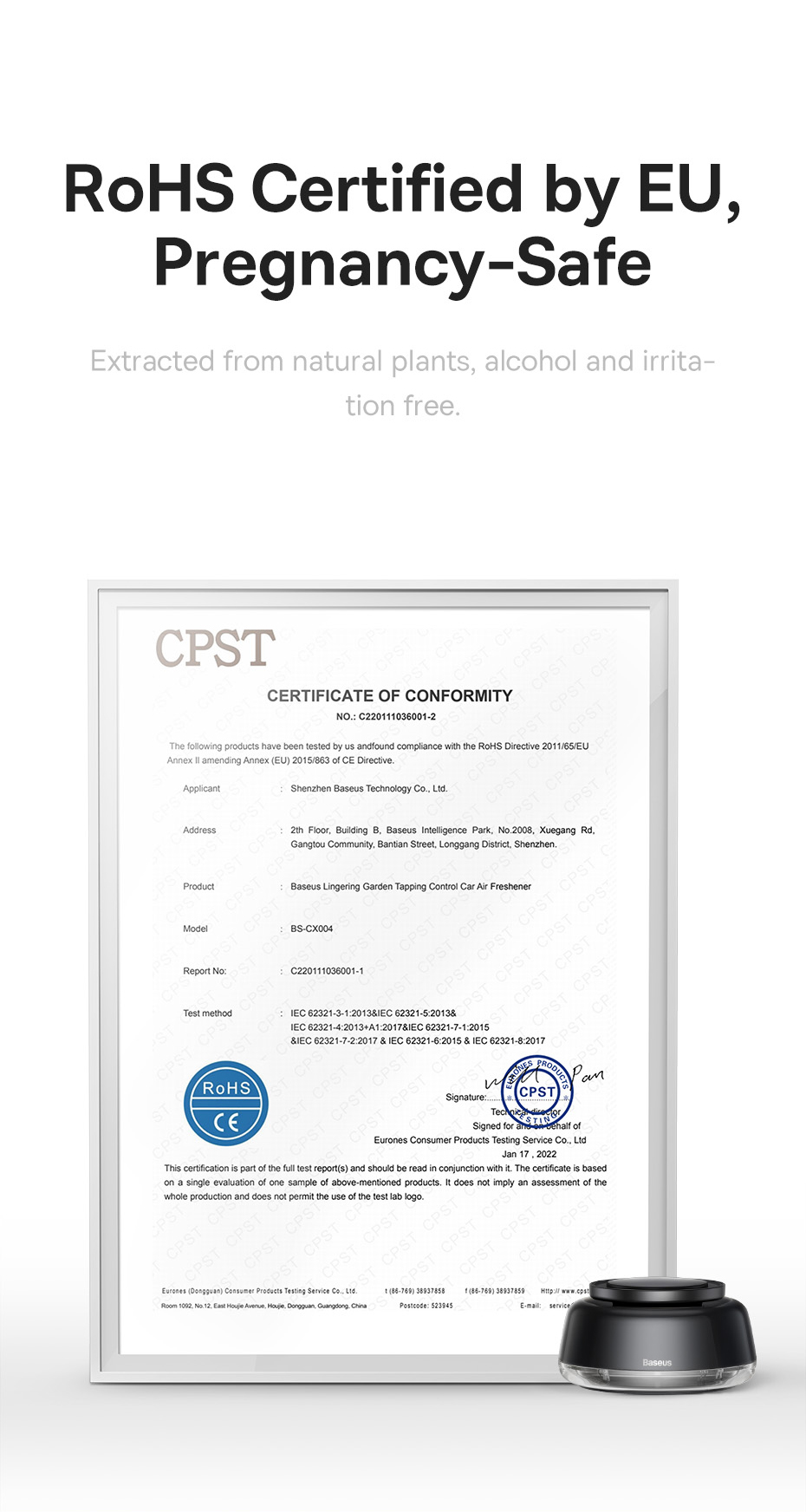 An toàn tuyệt đối cho sức khỏe: Đạt chứng nhận RoHS của Châu Âu, an toàn cho cả phụ nữ mang thai và trẻ nhỏ.