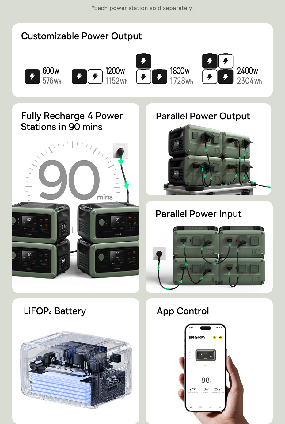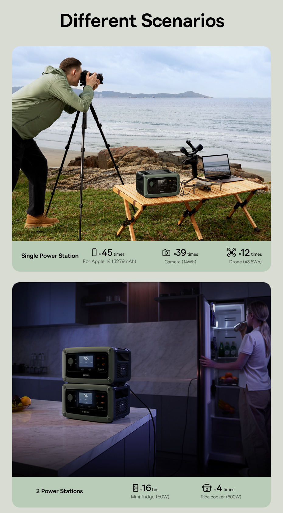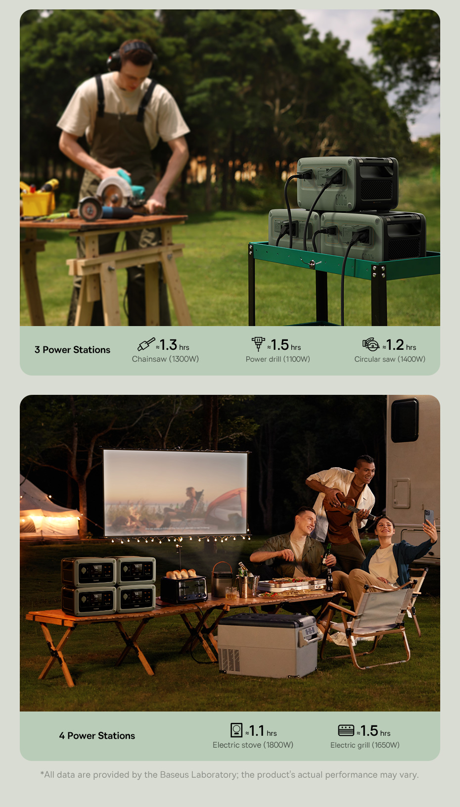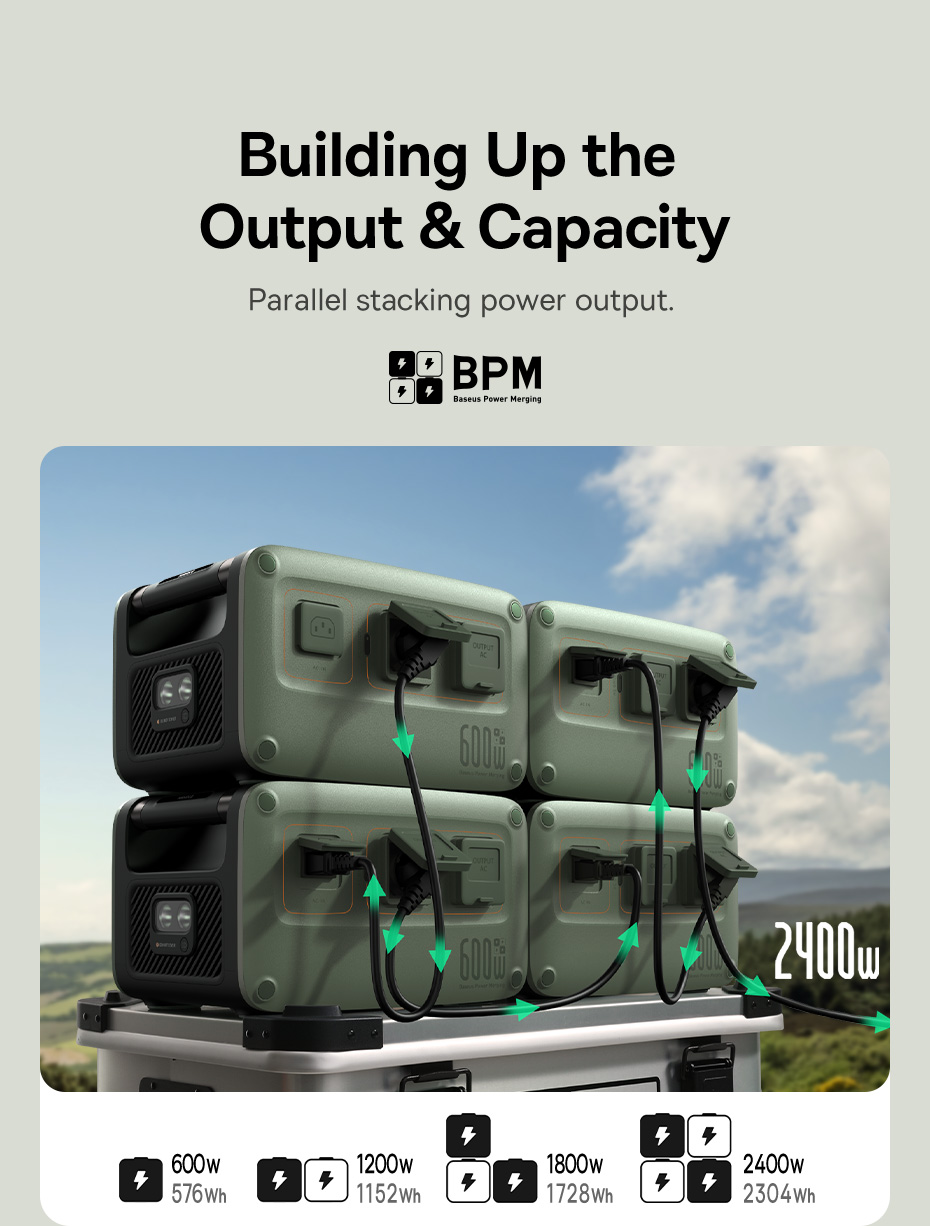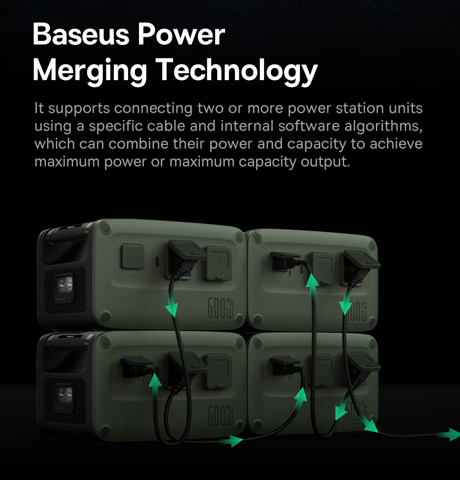 🔄 Khả Năng Ghép Nối, Mở Rộng Công Suất: Đây là tính năng đột phá nhất! Bạn có thể kết nối song song nhiều trạm sạc Baseus Energy Stack lại với nhau để nhân đôi, nhân ba công suất đầu ra, đủ sức mạnh để vận hành cả các thiết bị công suất cực lớn như bếp điện hay máy khoan.