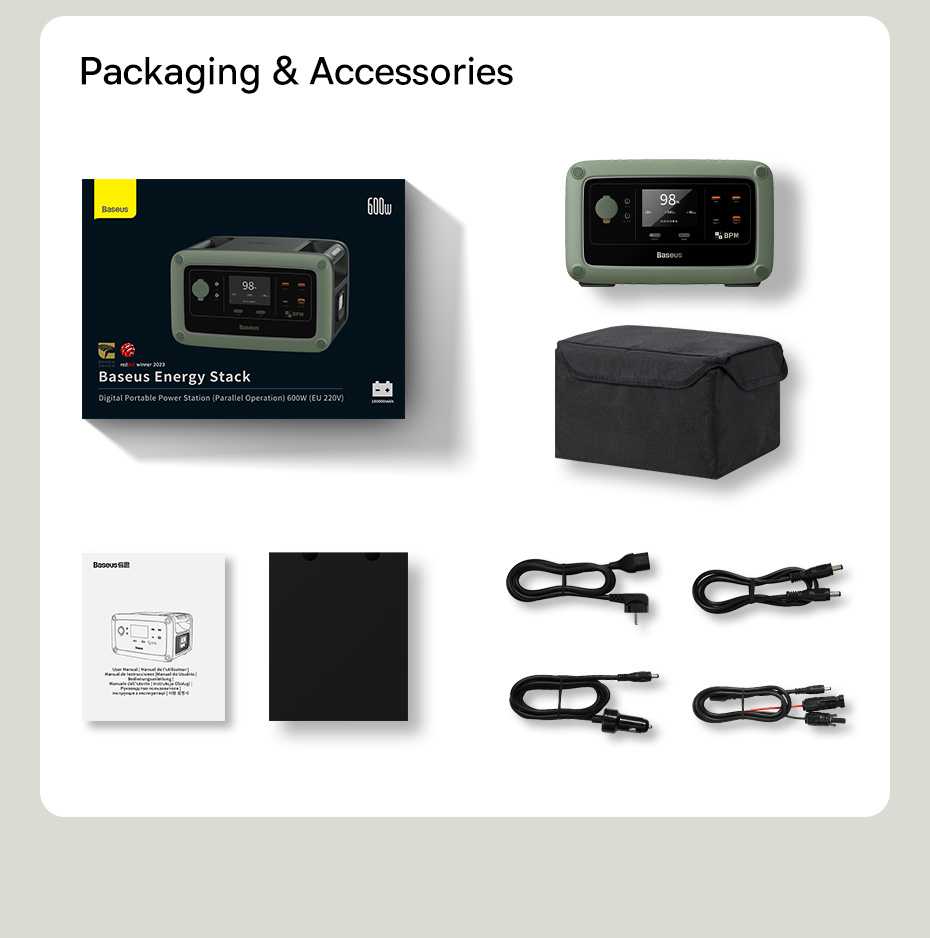| Tên | Bộ Sạc Di Động Baseus Energy Stack Digital Portable Power Station (Parallel Operation) 600W (EU 220V) Forest Green |
