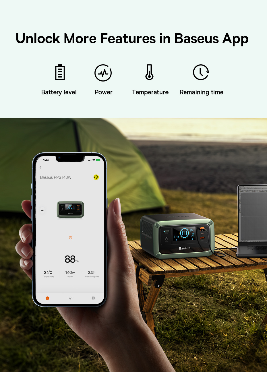 📱 AN TOÀN & THÔNG MINH: Sử dụng pin LiFePO4 (pin xe điện) siêu an toàn, tuổi thọ cao. Dễ dàng quản lý mọi thông số qua App Baseus trên điện thoại.