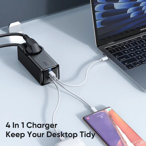 ○ Thiết kế 4 trong 1: 1 Ổ cắm AC + 2 Cổng Type-C + 1 Cổng USB.