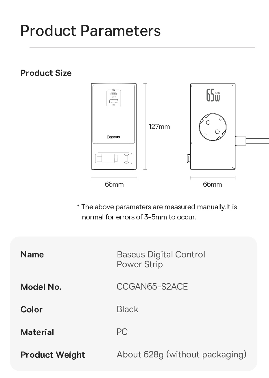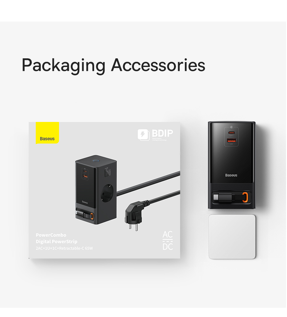 | Tên | Bộ Sạc Nhanh 65W OS-Baseus PowerCombo Digital PowerStrip 2AC+1U+1C+Retractable-C 65W (Chân cắm tròn, dây dài 1.5M) |