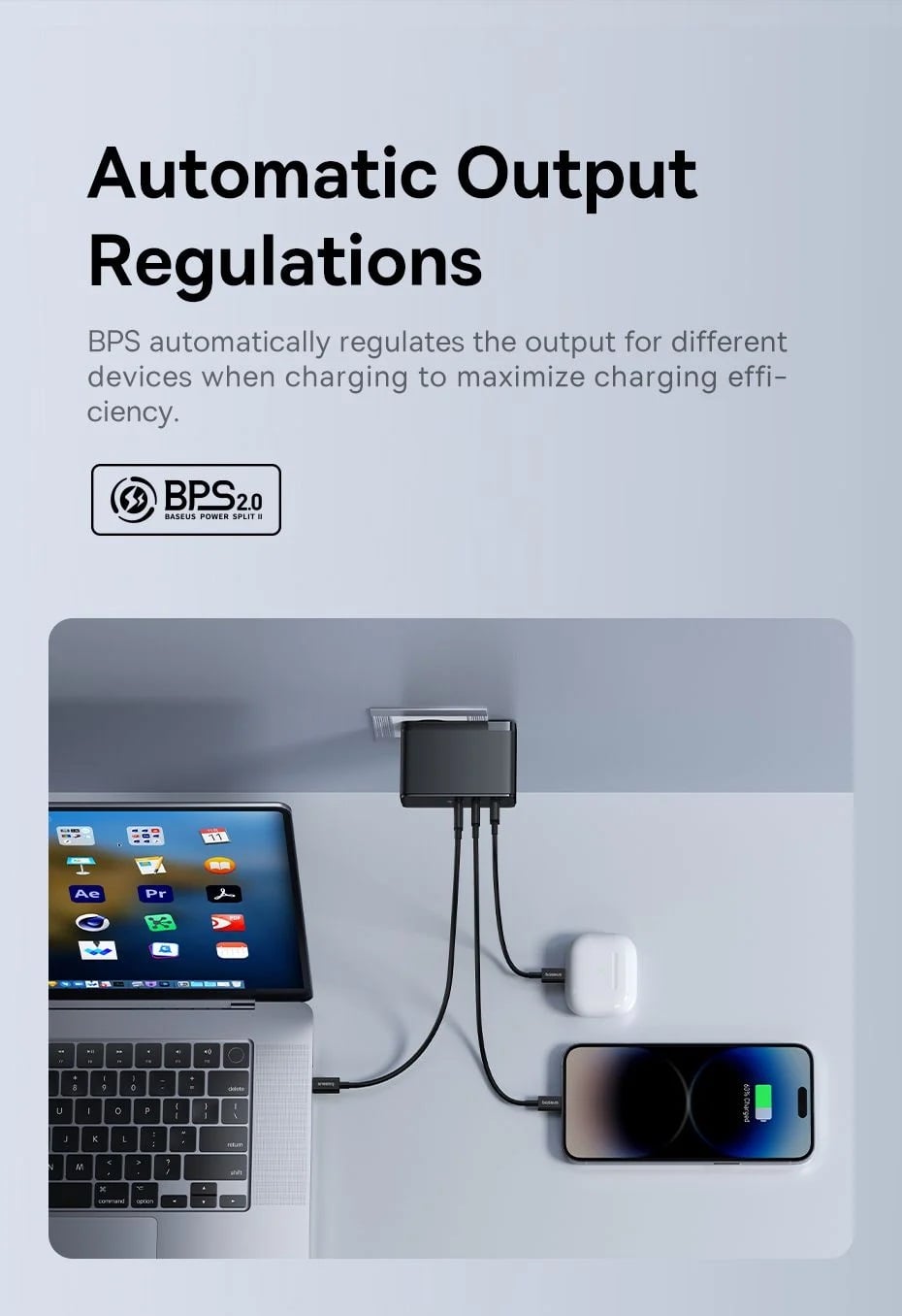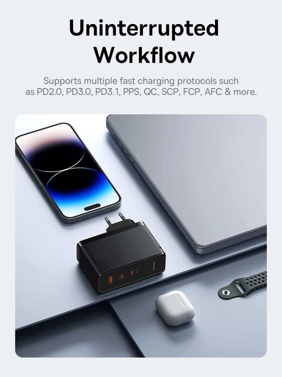 Giải phóng sức mạnh sạc tối thượng với củ sạc Baseus GaN5 Pro 160W. Được trang bị công nghệ GaN5 và chuẩn sạc PD3.1 mới nhất, đây là củ sạc duy nhất bạn cần để nạp năng lượng siêu tốc cho tất cả các thiết bị, kể cả những chiếc laptop yêu cầu công suất cao nhất.