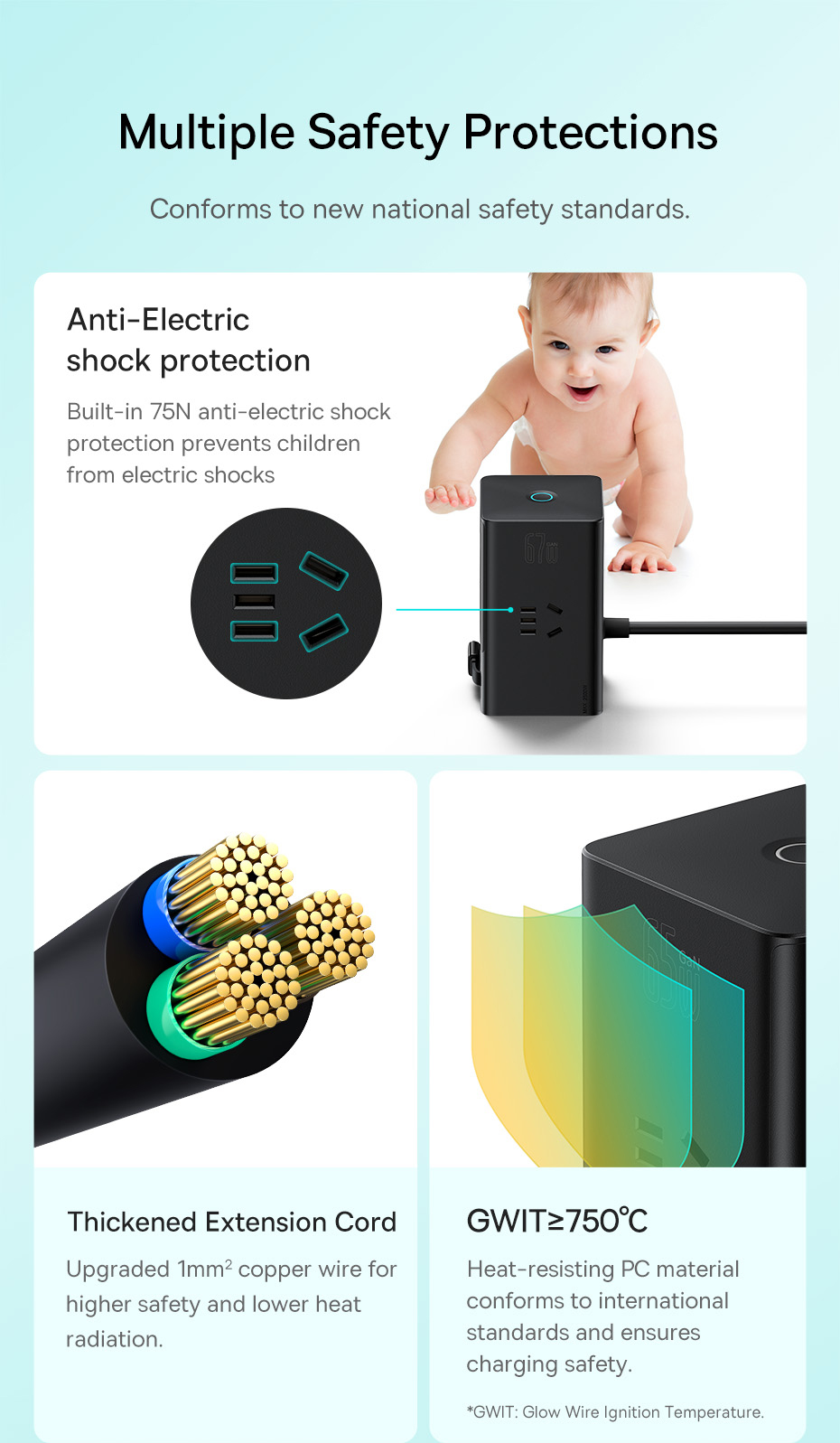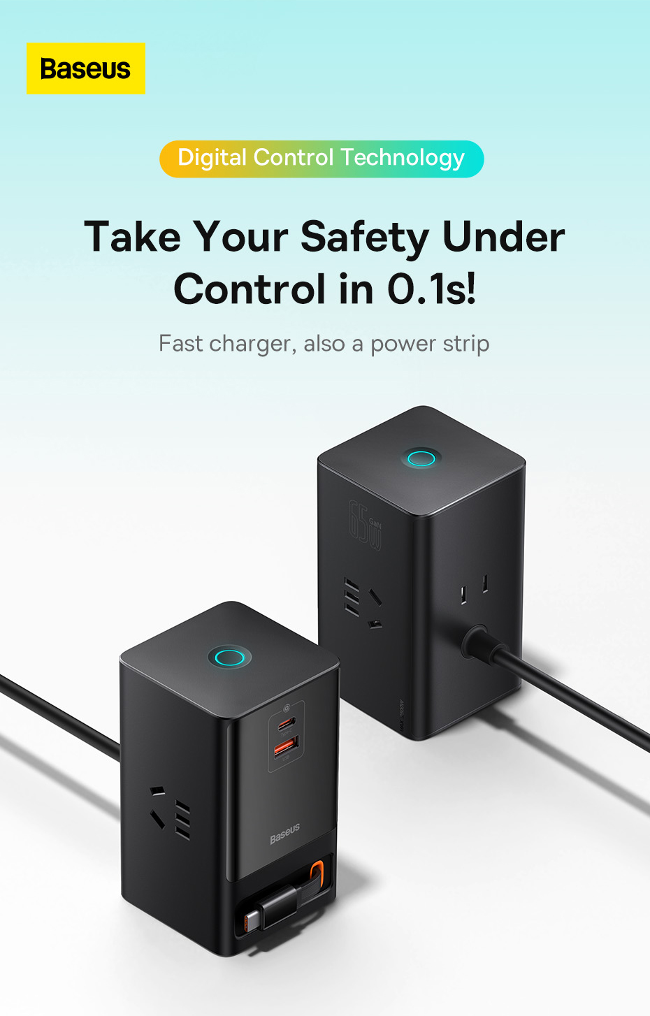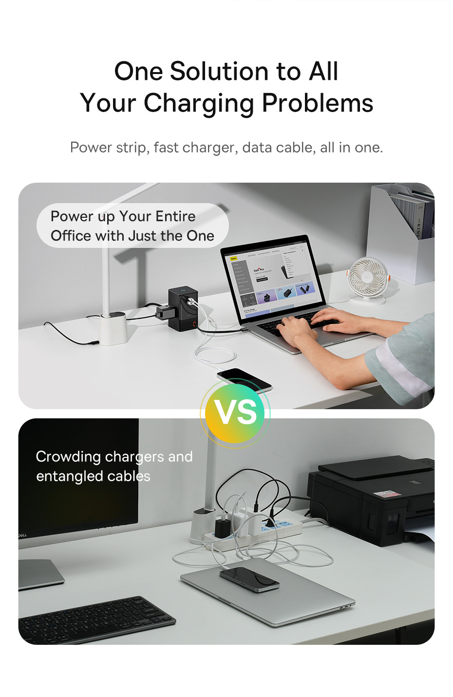 Với việc tích hợp dây dẫn nguồn AC nối dài kèm theo 3 ổ cắm điện AC, Baseus PowerCombo Digital Powerstrip không chỉ là một củ sạc đa năng mà nó còn được sử dụng như một ổ cắm điện thông minh, đáp ứng mọi nhu cầu và không gian làm việc của bạn. Chỉ với Baseus PowerCombo Digital PowerStrip có thể đảm bảo cấp nguồn cho tất cả các thiết bị của bạn từ AC đến DC.