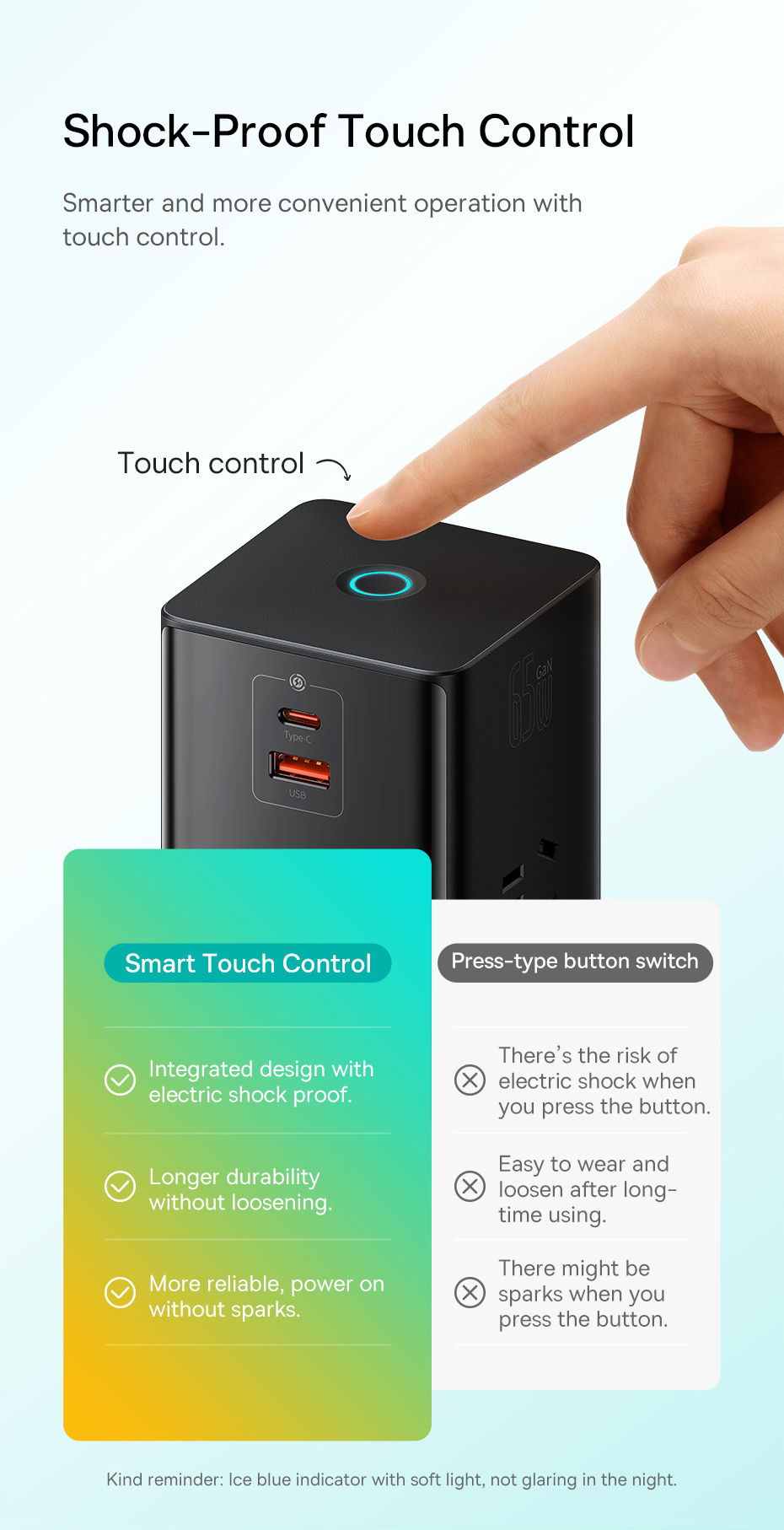 Đèn bảo hiện thị trạng thái hoạt động, nhắc nhở cho bạn về sự an toàn khi sạc
