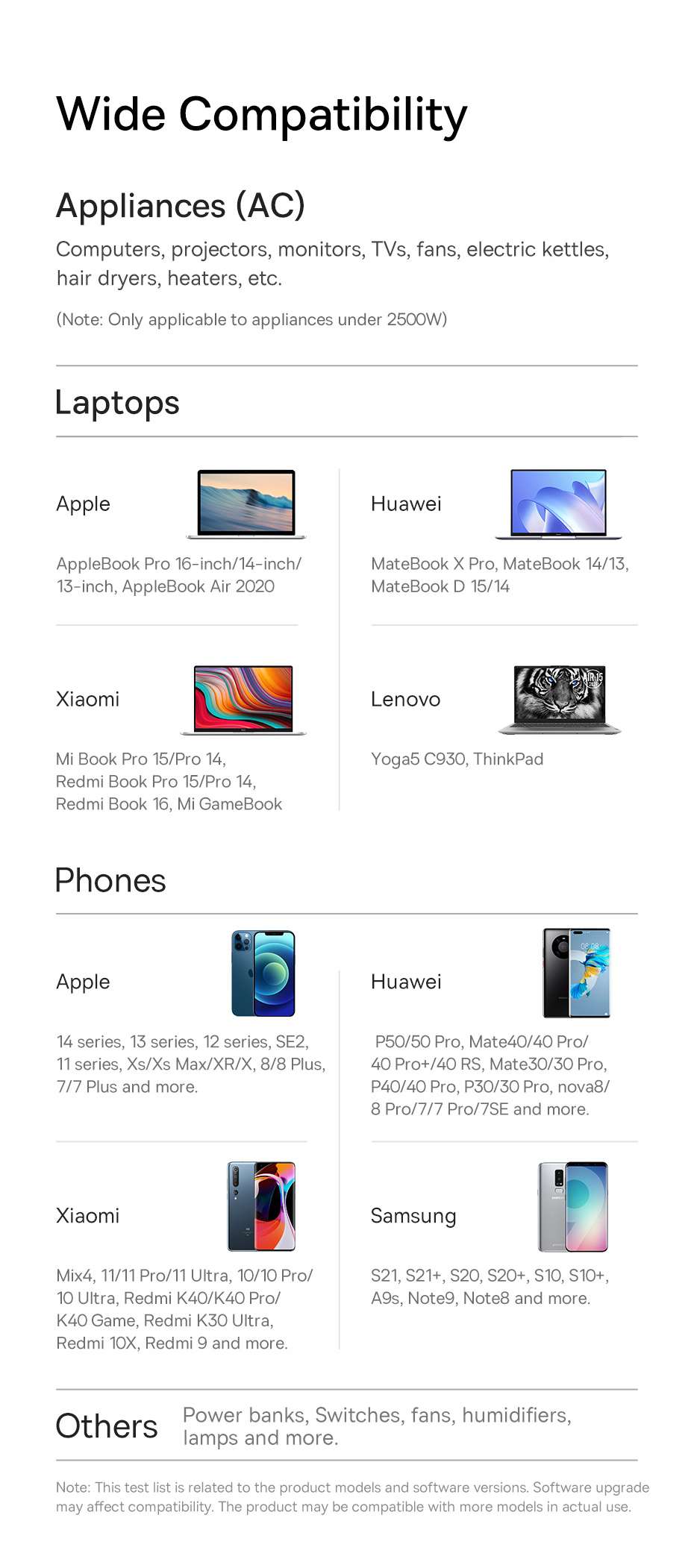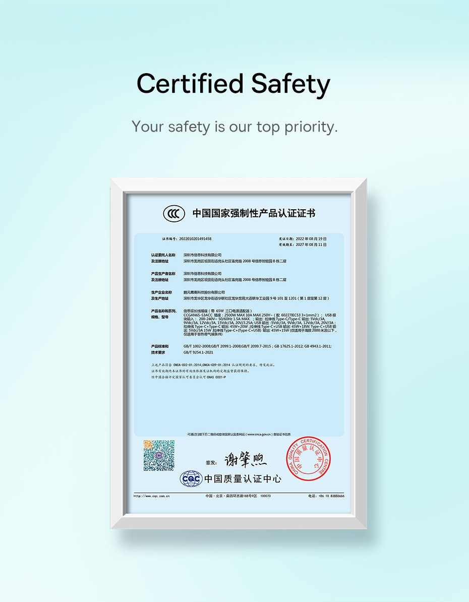 Sản phẩm hỗ trợ cổng sạc USB và Type C phổ thông, hỗ trợ sạc nhanh. Công nghệ xử lý nguồn hiện đại (GaN5 Technology) tự động nhận diện thiết bị và điều chỉnh dòng điện và điện áp phù hợp ( auto Voltage ) . Dây nguồn nối dài và ổ cắm 3 AC hỗ trợ công suất tối đa 2500W, đảm bảo sử dụng an toàn cho các thiết bị dùng điện AC như : Đèn, Quạt, Laptop, Màn hình, Bộ sạc, Router wifi, Sấy tóc....