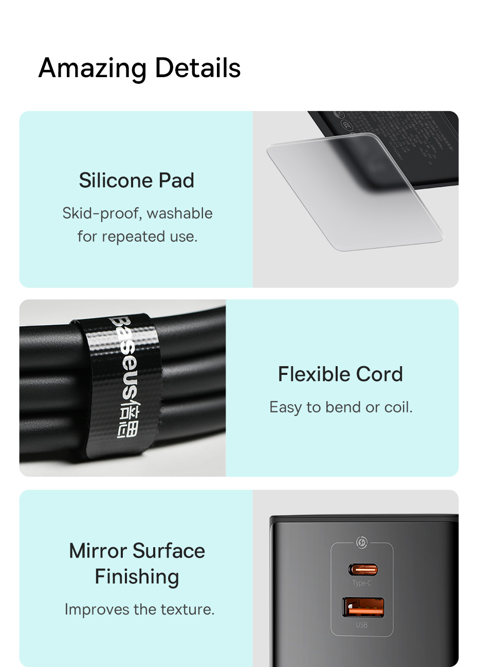 | Retractable Type-C + USB Output | 45W + 18W |