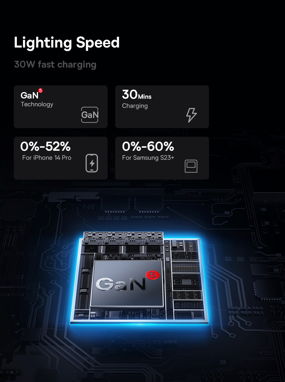 💎 CÔNG NGHỆ GAN THẾ HỆ 6 - SIÊU NHỎ GỌN: Ứng dụng công nghệ GaN tiên tiến giúp thu nhỏ đáng kể kích thước của bộ sạc mà vẫn đảm bảo hiệu suất sạc nhanh 20W mạnh mẽ và hoạt động mát mẻ, an toàn.