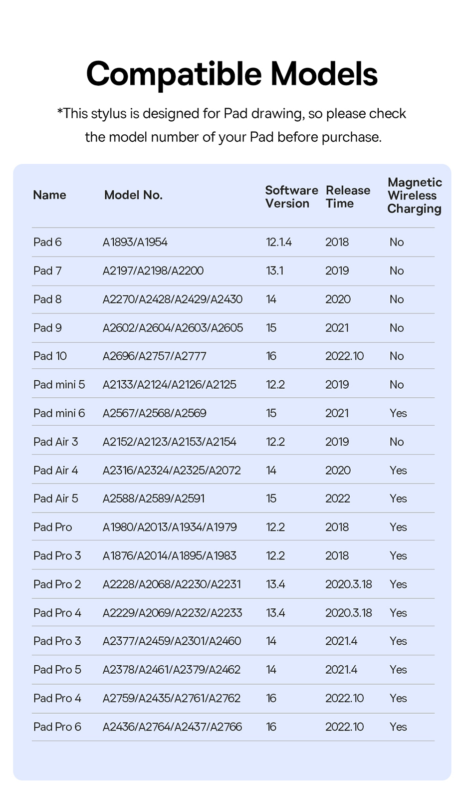Lưu ý: Bút chỉ tương thích các thiết bị iPad từ 2018 trở lên
