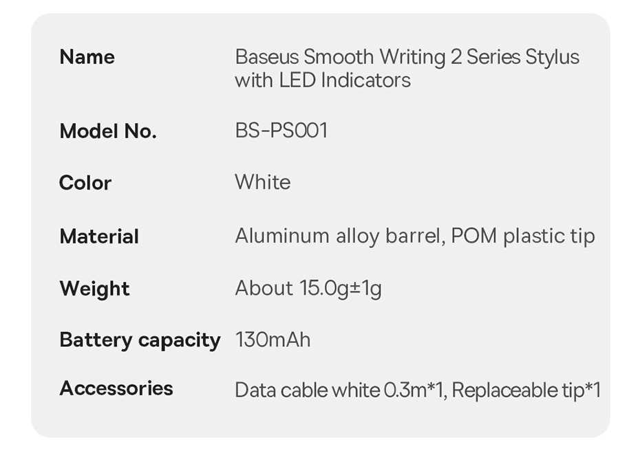 | Tên | Bút Cảm Ứng Sạc Có Dây OS-Baseus Smooth Writing 2 Series Stylus with LED Indicators, Moon White |