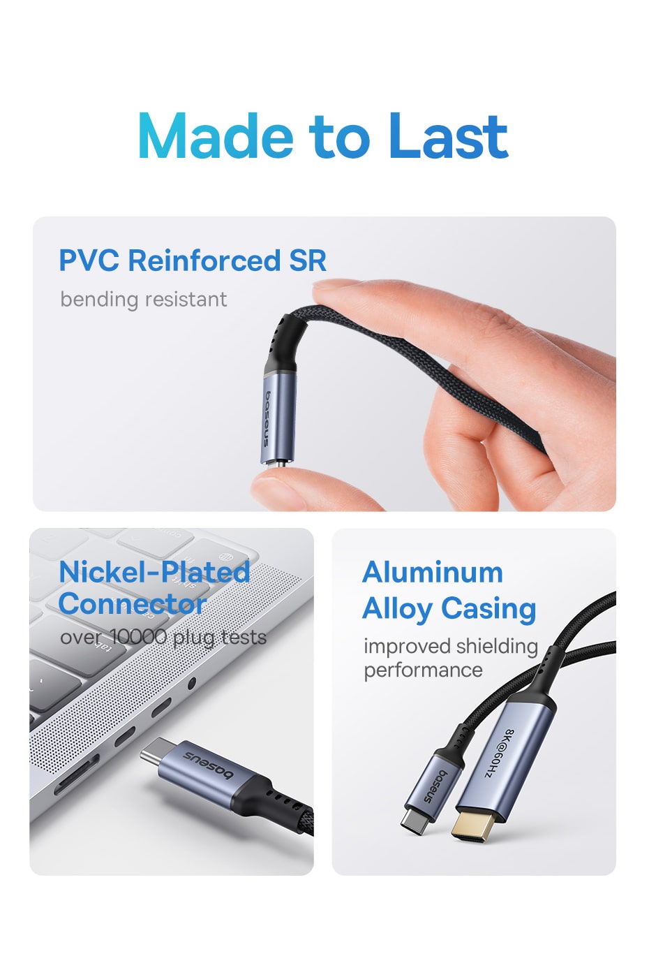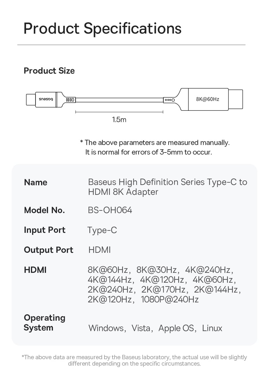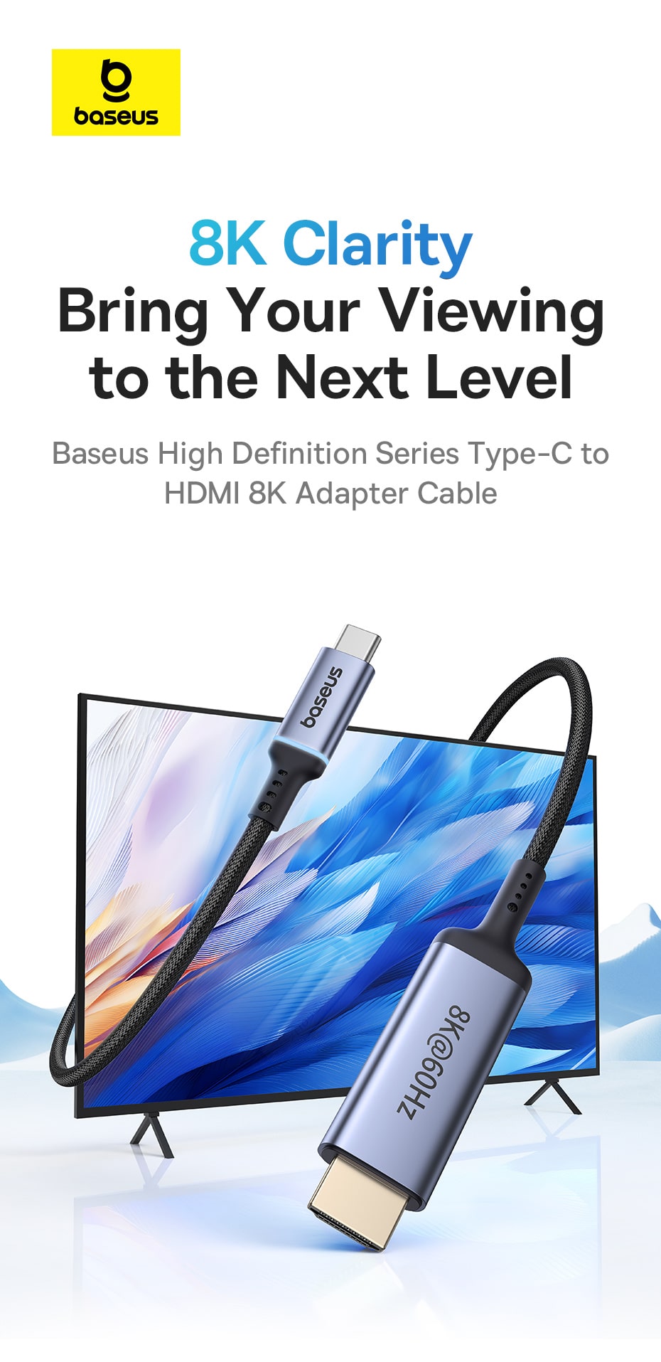 Cáp Xuất Hình Baseus Type-C to HDMI 8K@60Hz | Hỗ Trợ Gaming 240Hz, Dynamic HDR