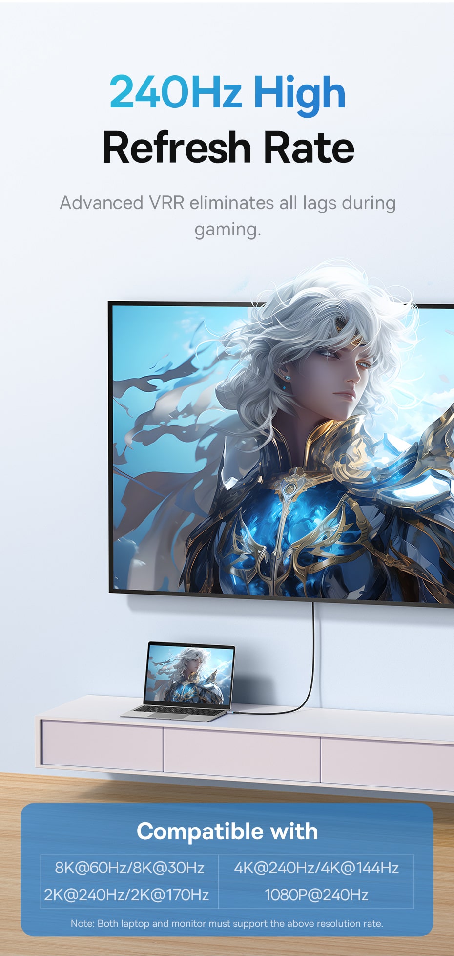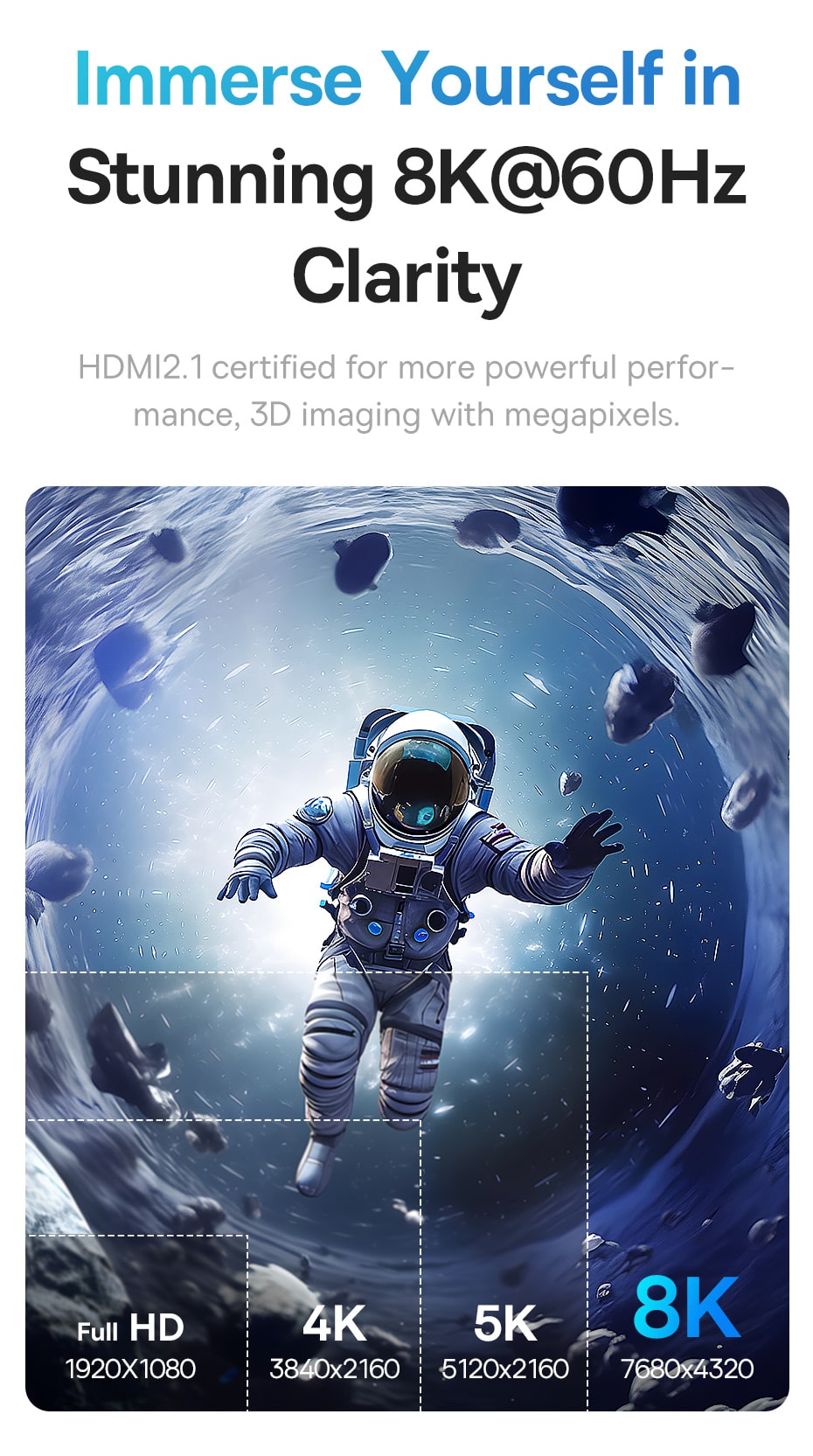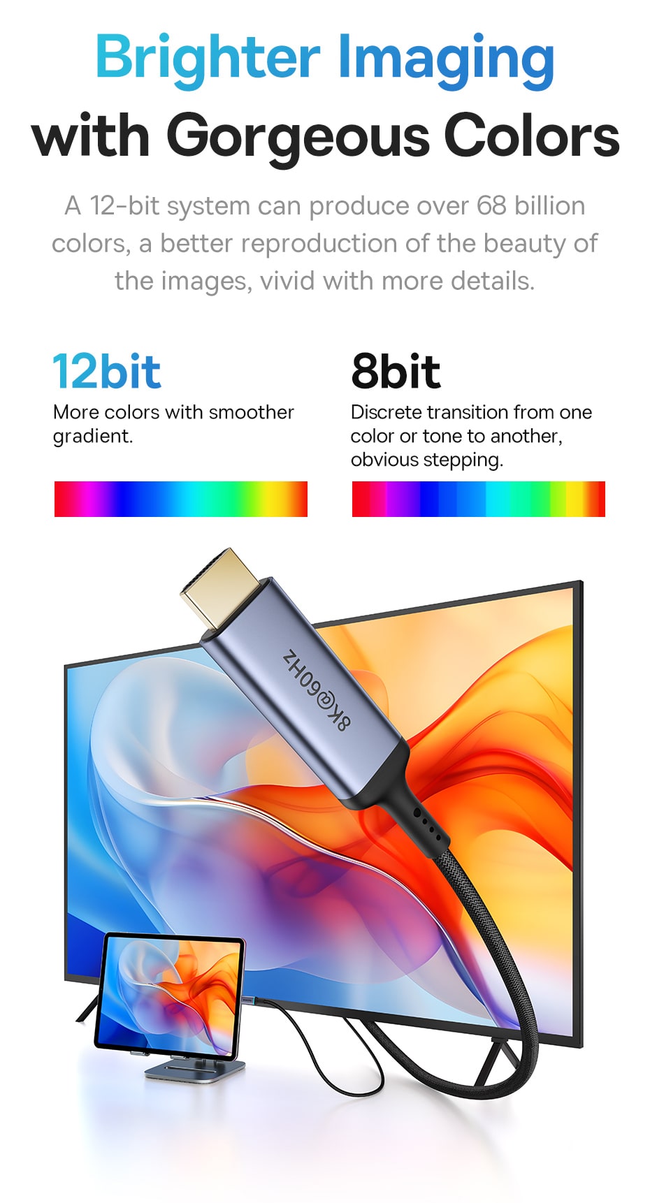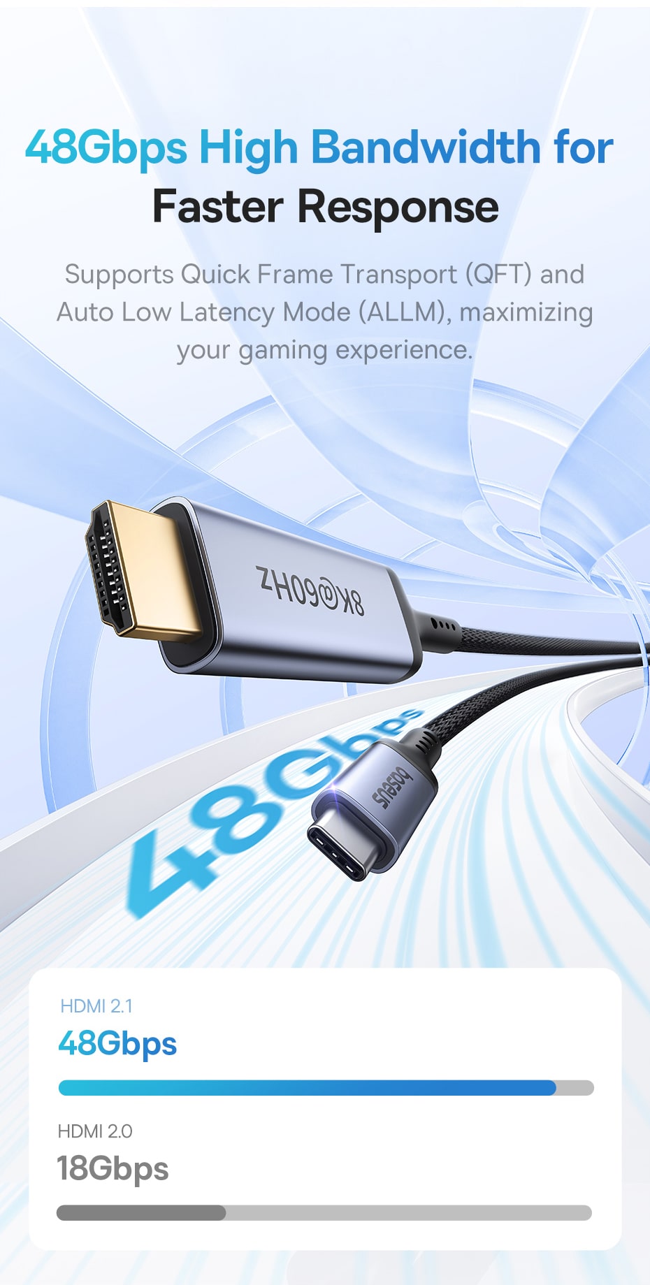 Cáp Xuất Hình Baseus Type-C to HDMI 8K@60Hz | Hỗ Trợ Gaming 240Hz, Dynamic HDR