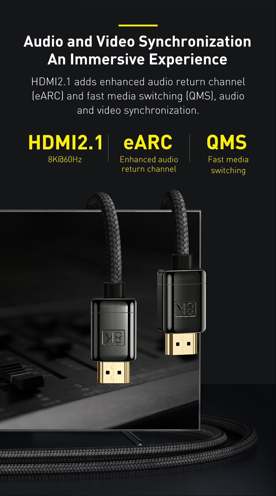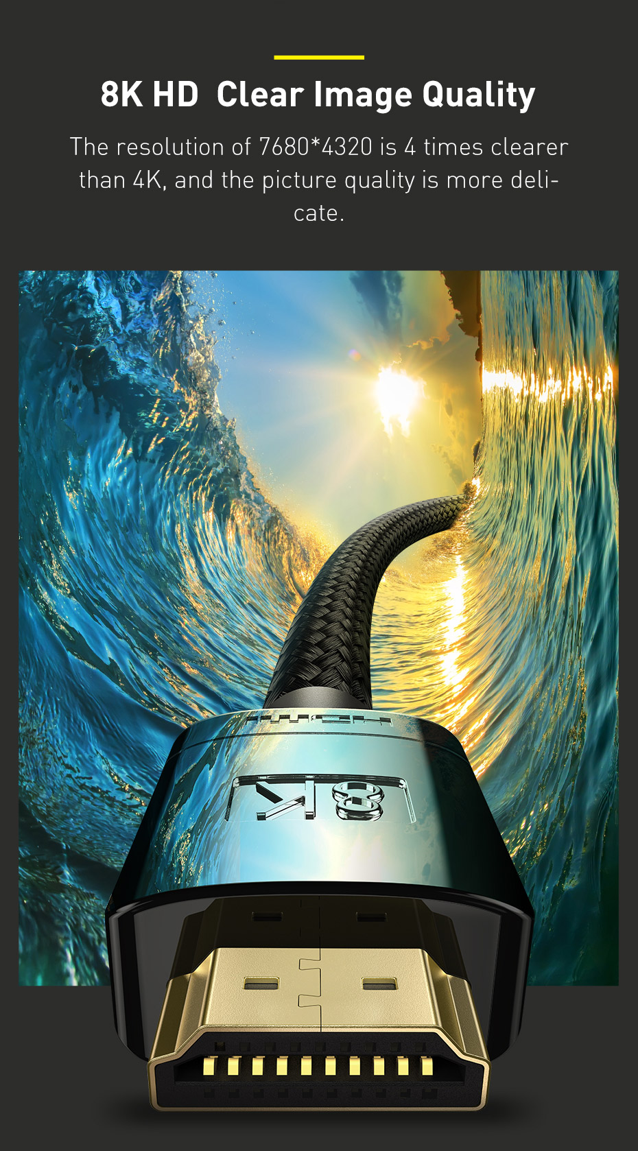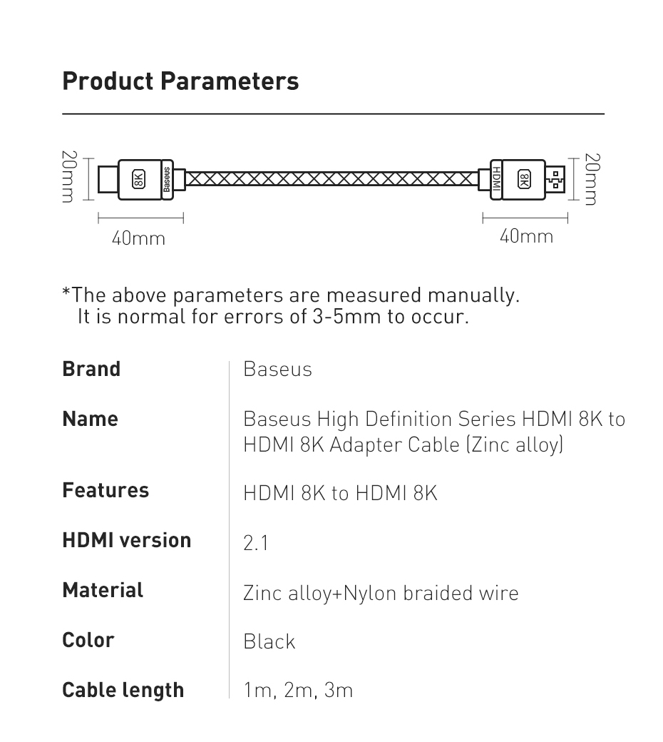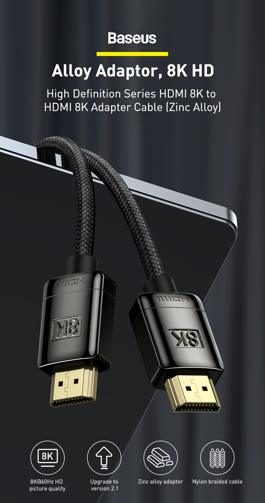 ✨ CÁP HDMI 2.1 BASEUS 8K - BĂNG THÔNG 48GBPS, TRẢI NGHIỆM ĐỈNH CAO! ✨ Nâng cấp toàn bộ trải nghiệm nghe nhìn của bạn lên chuẩn mực mới nhất! Cáp HDMI 2.1 Baseus là cầu nối tốc độ cao cần thiết để truyền tải hình ảnh 8K@60Hz, 4K@120Hz và các tính năng gaming tiên tiến lên TV, màn hình và Console thế hệ mới.