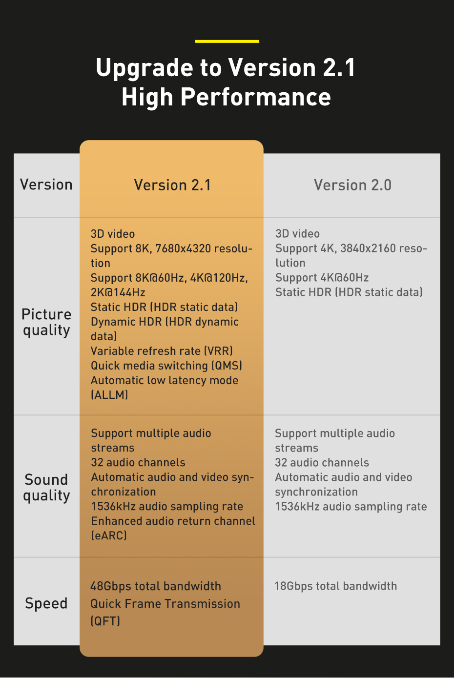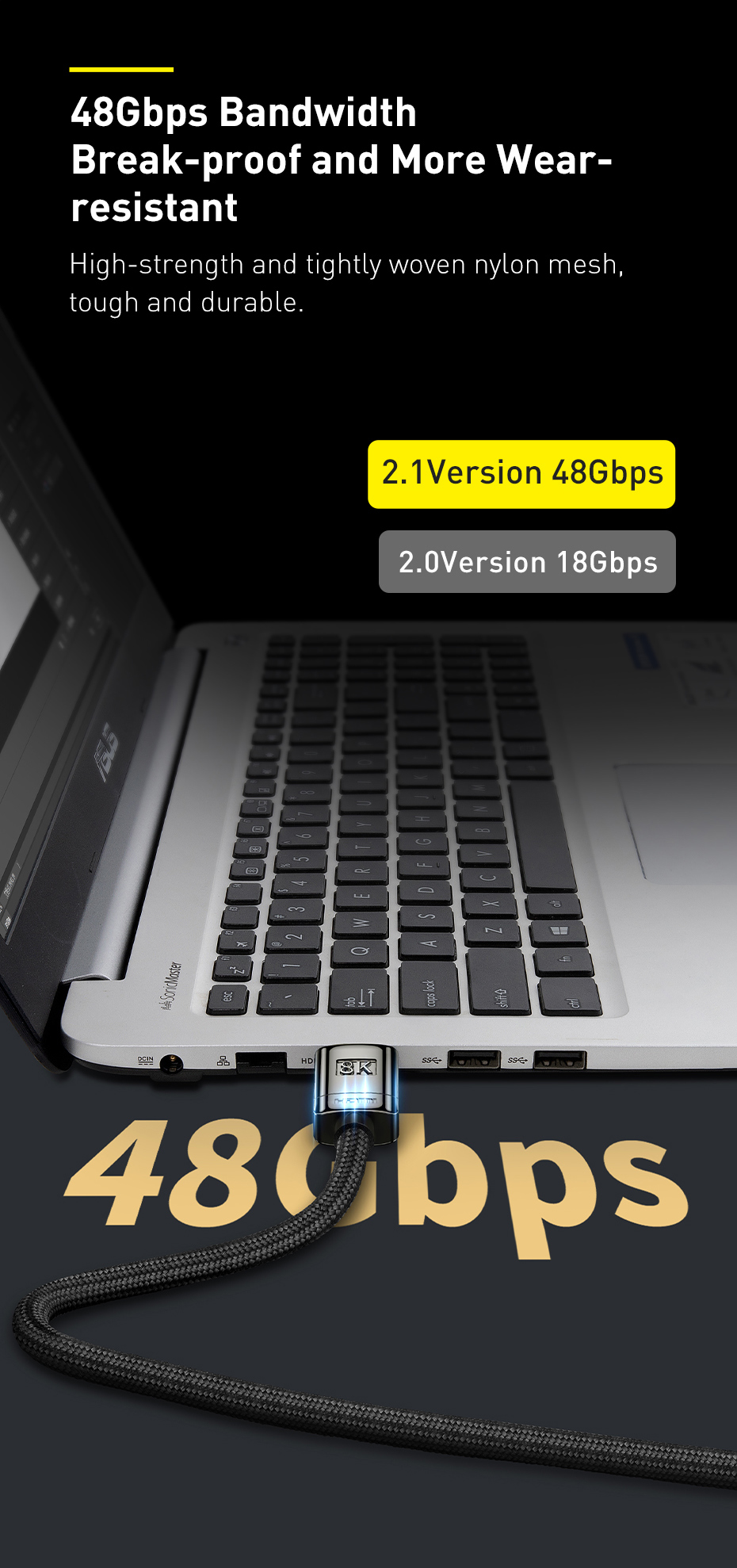 🚀 BĂNG THÔNG 48GBPS - CHUẨN HDMI 2.1: Đạt băng thông truyền tải lên đến 48Gbps, đảm bảo truyền tải ổn định nội dung 8K@60Hz hoặc 4K@120Hz mà không bị gián đoạn hay mất tín hiệu.