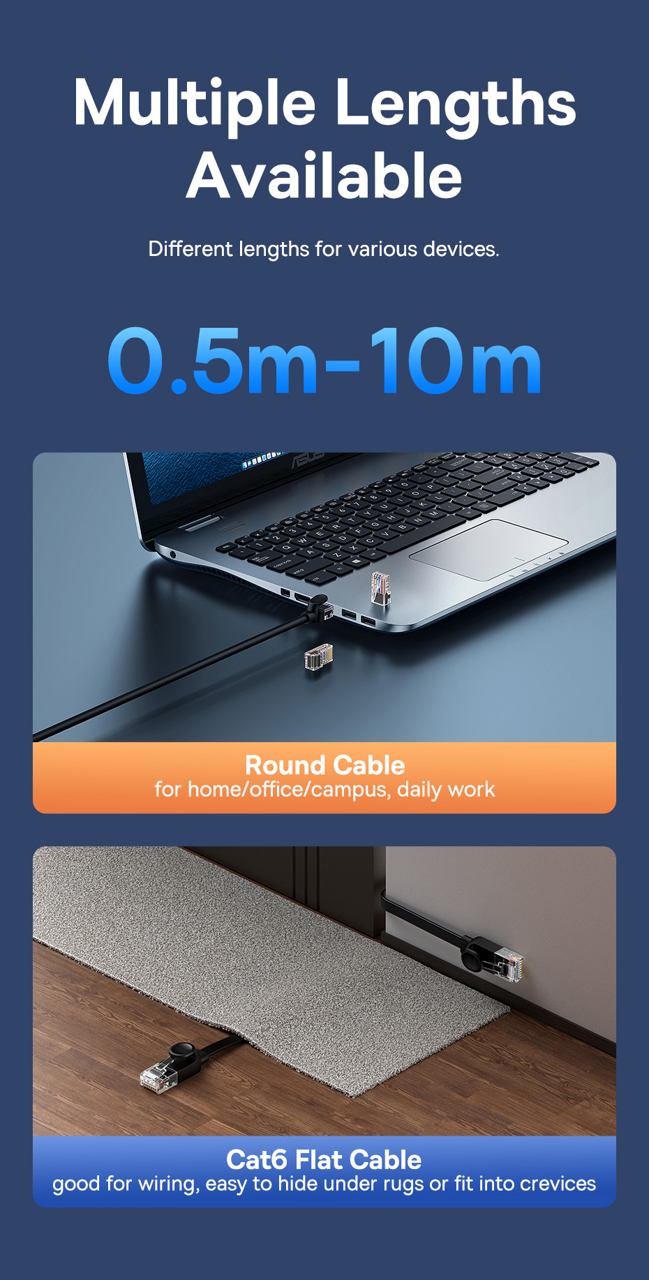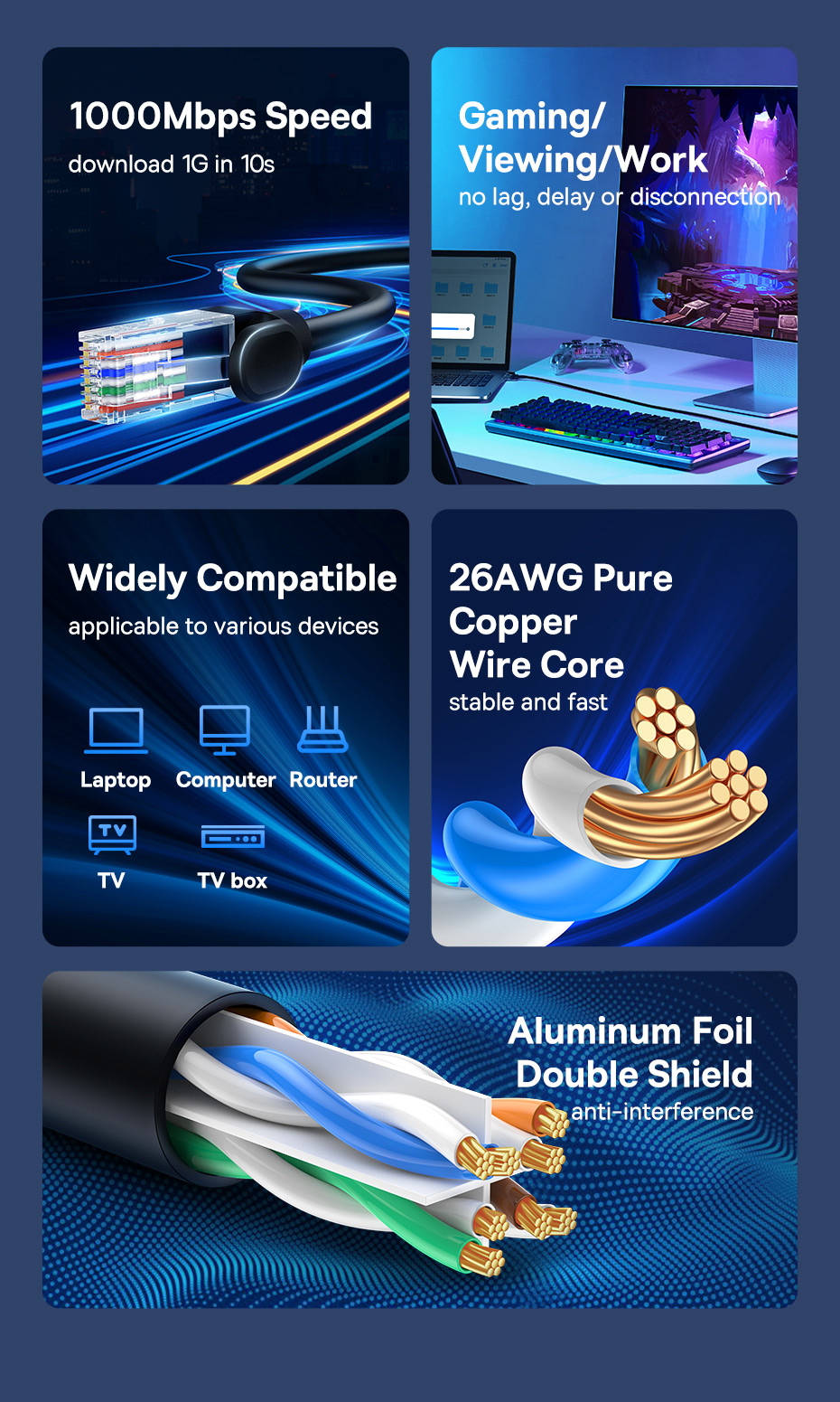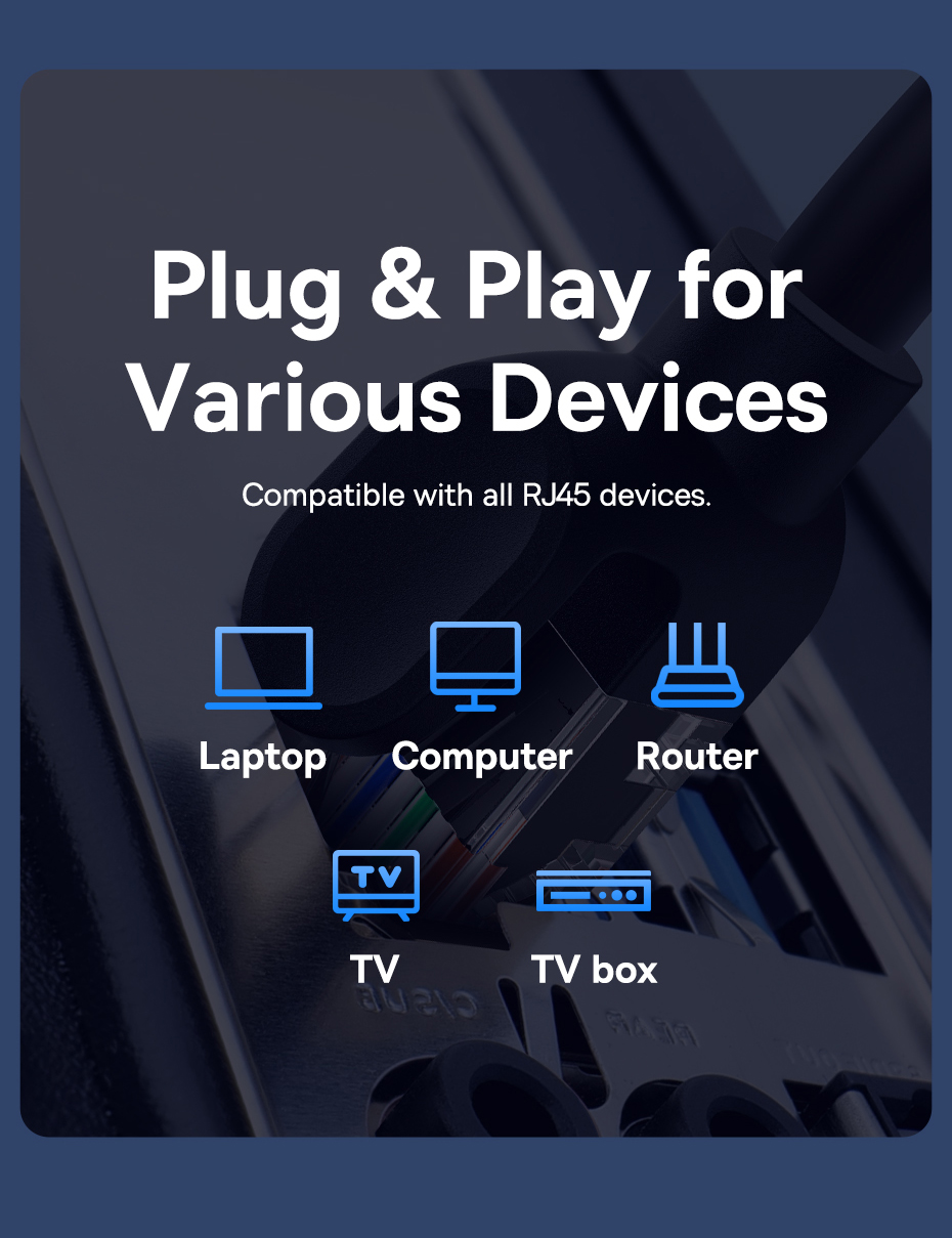 Đầu cắm RJ45 phổ thông: Tương thích với PC, laptop, TV, router...
