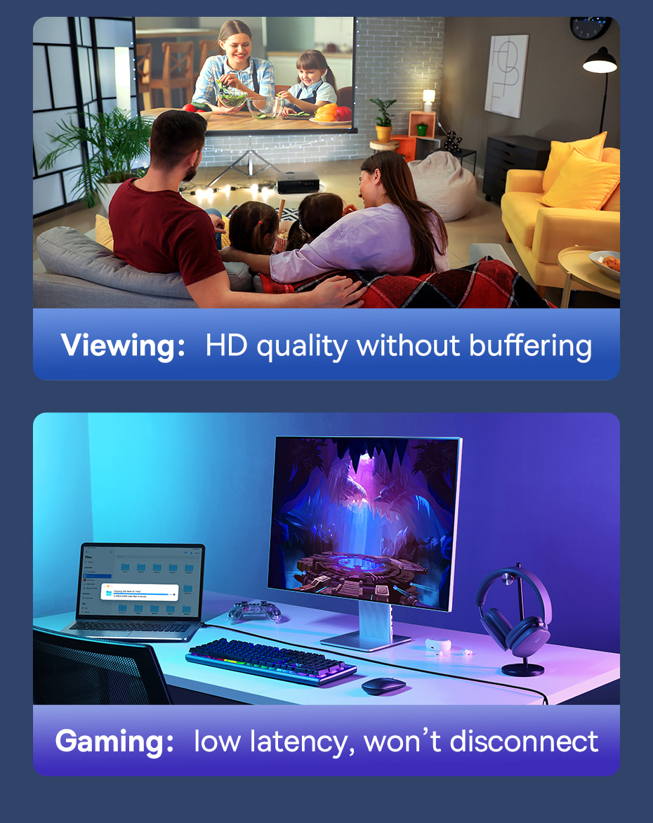Kết nối ổn định, độ trễ thấp: Giúp loại bỏ hoàn toàn tình trạng giật lag của Wi-Fi.