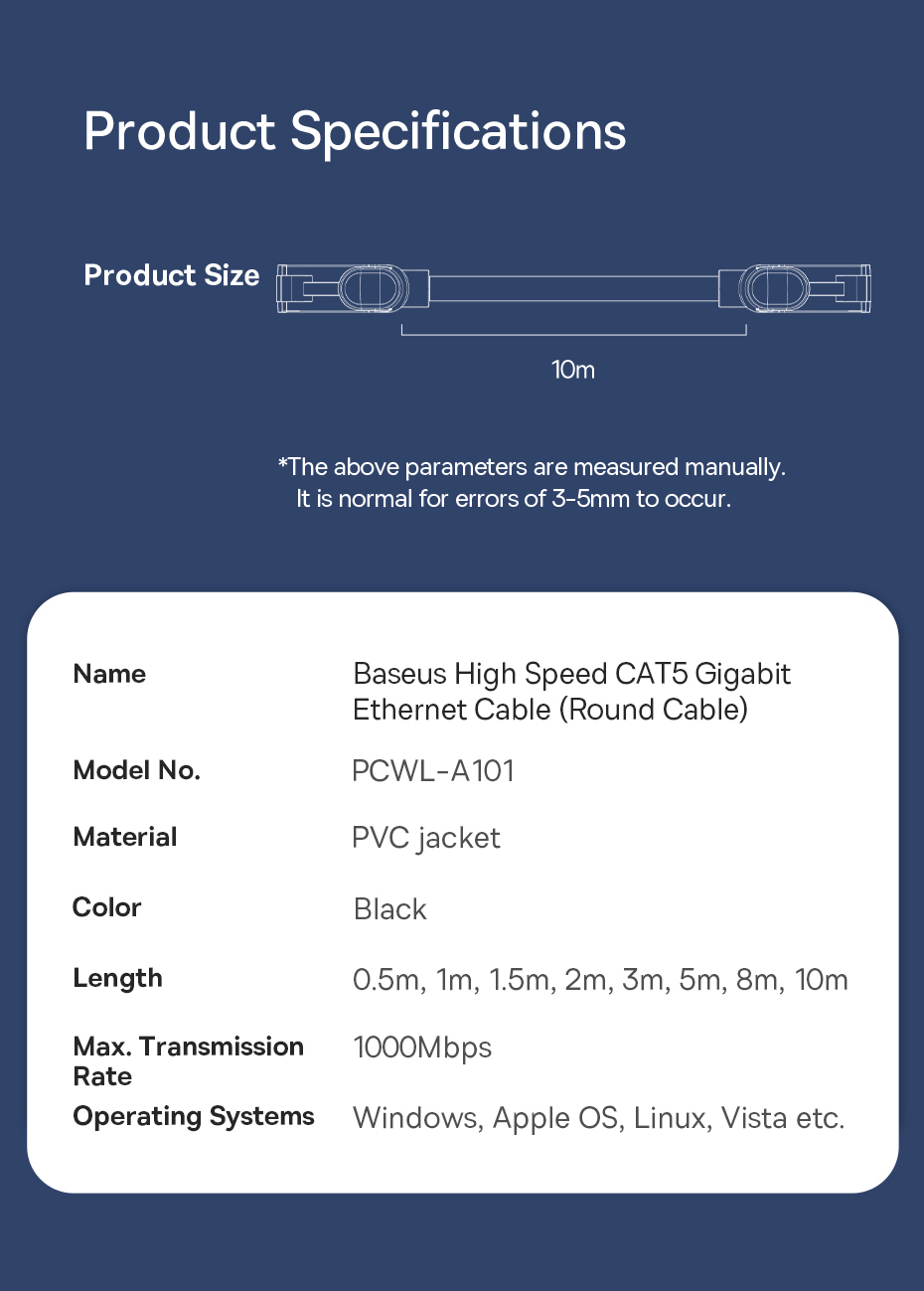 | Tên | Cáp Mạng Lan 2 Đầu Baseus High Speed CAT6 Gigabit Ethernet Cable (Round Cable) |