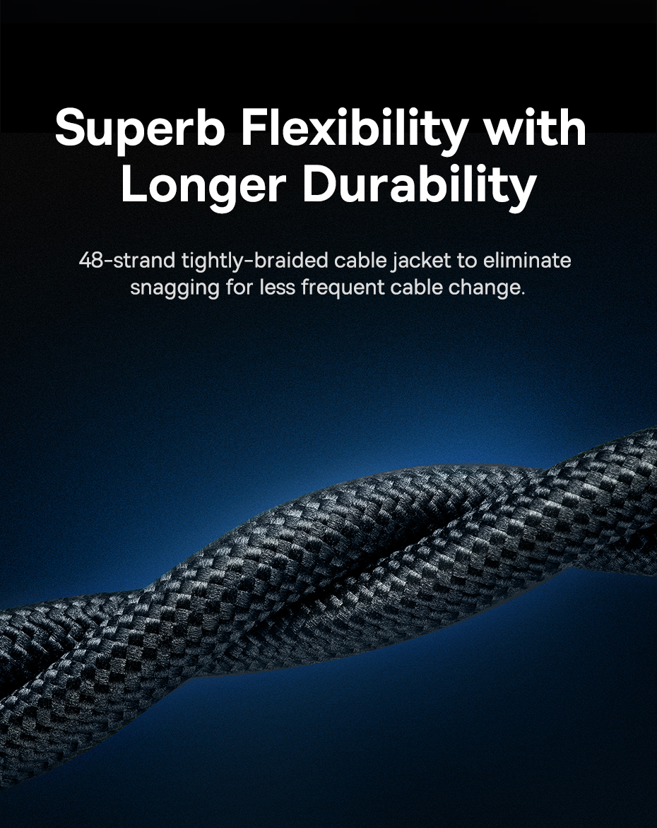 💪 Dây Dù Bện 48 Sợi Siêu Bền: Vỏ cáp được bện từ 48 sợi nylon chắc chắn, mang lại sự dẻo dai nhưng cực kỳ bền bỉ, có khả năng chống mài mòn và đứt gãy hiệu quả, bền hơn gấp nhiều lần so với cáp vỏ nhựa.