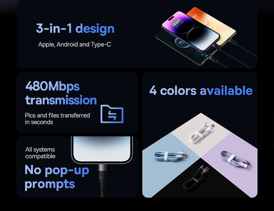 Cáp sạc Baseus StarSpeed 3 đầu là phụ kiện hữu ích và thiết thực cho người dùng hiện đại. Với khả năng hỗ trợ nhiều thiết bị, tốc độ sạc nhanh và độ bền cao, sản phẩm giúp bạn luôn duy trì kết nối và năng lượng cho các thiết bị di động một cách tiện lợi và hiệu quả. Đây là lựa chọn tối ưu cho nhu cầu sử dụng hàng ngày hoặc mang theo khi đi công tác, du lịch.