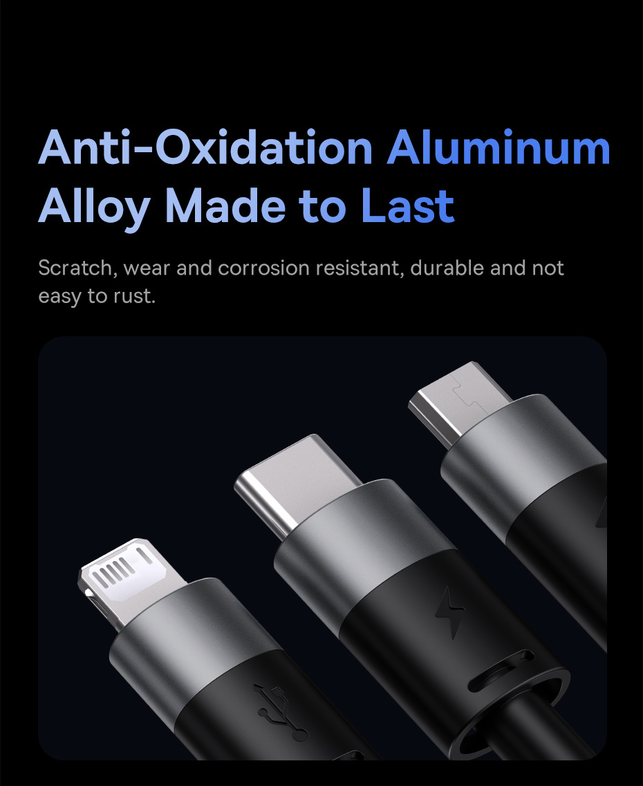 Cáp sạc 3 đầu Baseus StarSpeed là giải pháp sạc và truyền dữ liệu đa năng, phù hợp cho người dùng sở hữu nhiều thiết bị với các cổng kết nối khác nhau. Với thiết kế 1 dây chia thành 3 đầu gồm Micro USB, iP và Type-C, sản phẩm giúp bạn sạc nhiều thiết bị cùng lúc mà không cần mang theo nhiều dây. Cáp hỗ trợ dòng sạc tối đa lên đến 3.5A, đảm bảo tốc độ sạc ổn định và nhanh chóng.