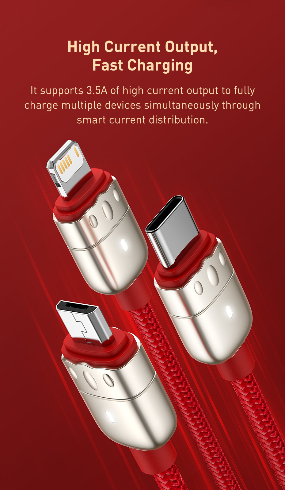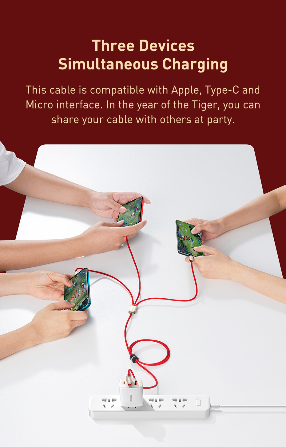 | Tên | Cáp Sạc 3 Đầu Baseus Year of the Tiger One-for-three Data Cable USB to M+L+C 3.5A |