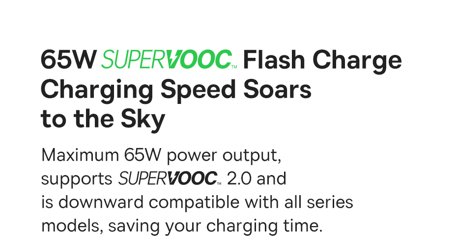 ○ Công suất 65W: Hỗ trợ sạc siêu nhanh SUPERVOOC 1.0/2.0 và VOOC.
