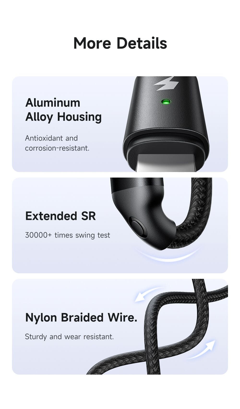 💪 Thiết Kế Bền Bỉ, Cao Cấp: Dây cáp được bọc dù bện nylon mật độ cao và đầu cắm hợp kim nhôm được gia cố chắc chắn, giúp chống rối, chống mài mòn và đảm bảo tuổi thọ sử dụng lâu dài.
