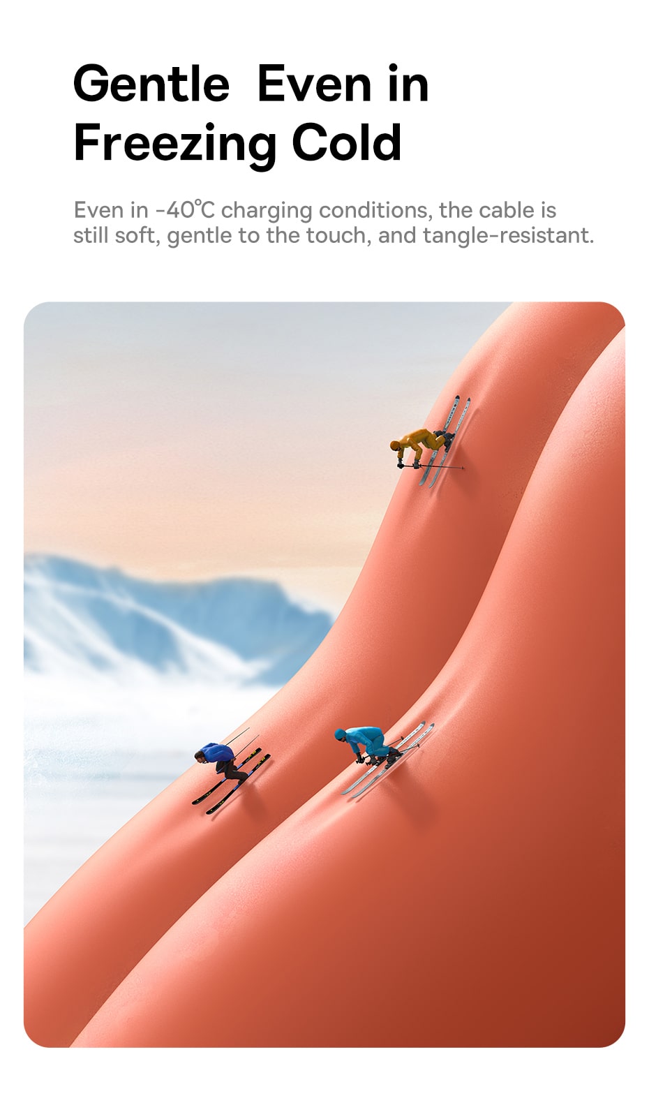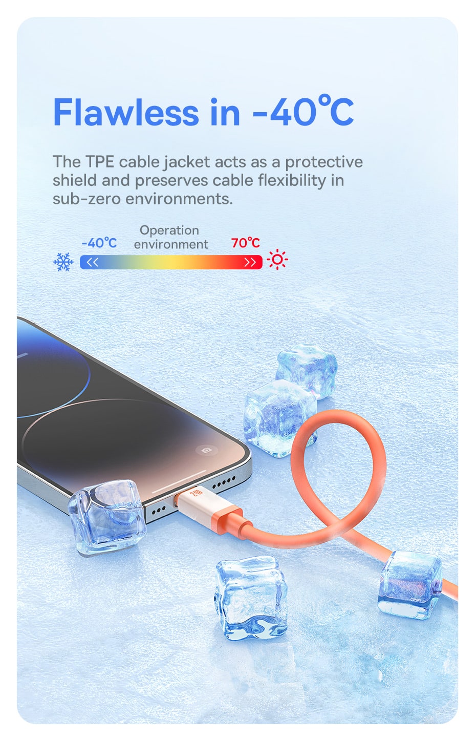❄️ Hoạt Động Ổn Định Ngay Cả Trong Thời Tiết Lạnh: Vật liệu TPE đặc biệt giúp sợi cáp không bị đông cứng hay giòn gãy ngay cả trong môi trường nhiệt độ cực thấp, đảm bảo hiệu suất sạc ổn định trong mọi điều kiện.