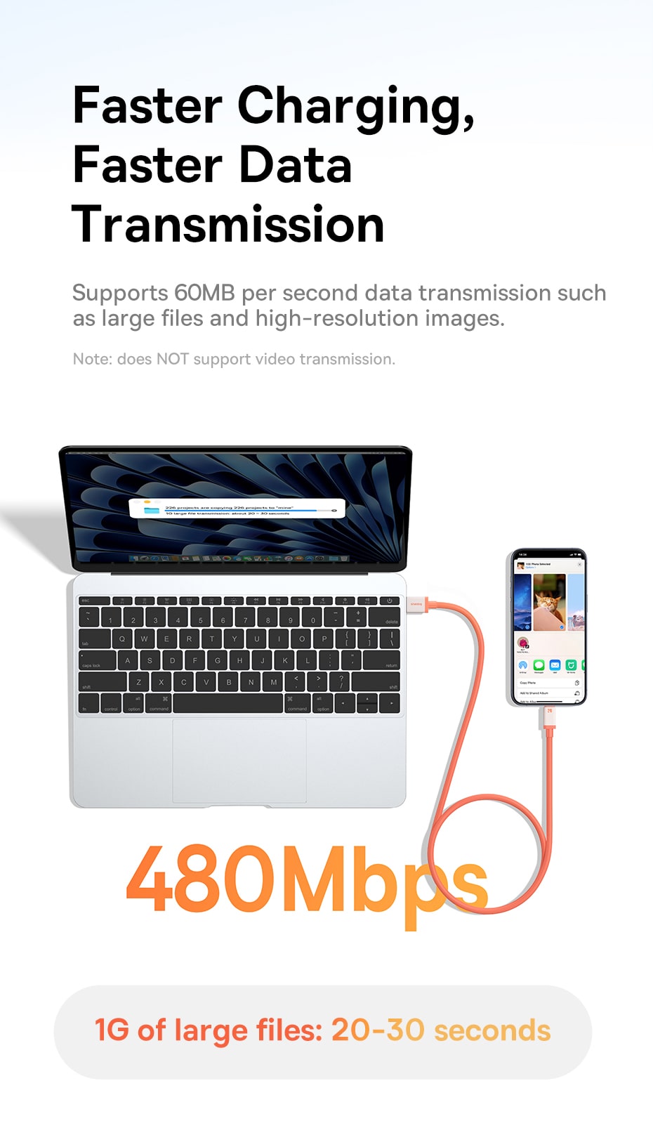 🍮 Chất Liệu Mềm Mại, Chống Rối: Cảm giác cầm nắm mềm mại, thân thiện với da tay. Đặc tính linh hoạt của vật liệu TPE cũng giúp sợi cáp có khả năng chống rối vượt trội, dễ dàng cất giữ.