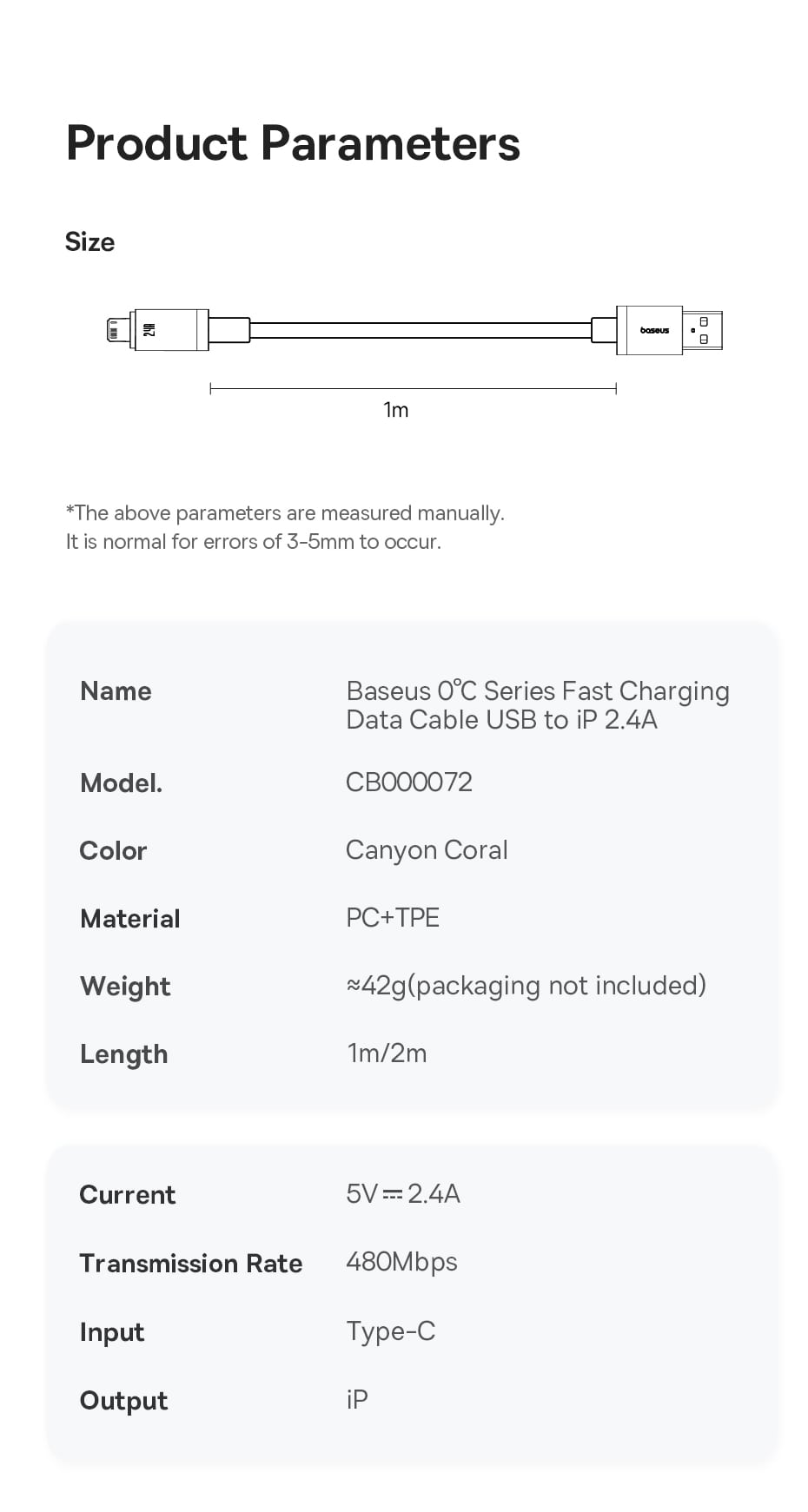 | Tên | Cáp Sạc Nhanh Baseus 0℃ Series Fast Charging Data Cable USB to iP 2.4A |