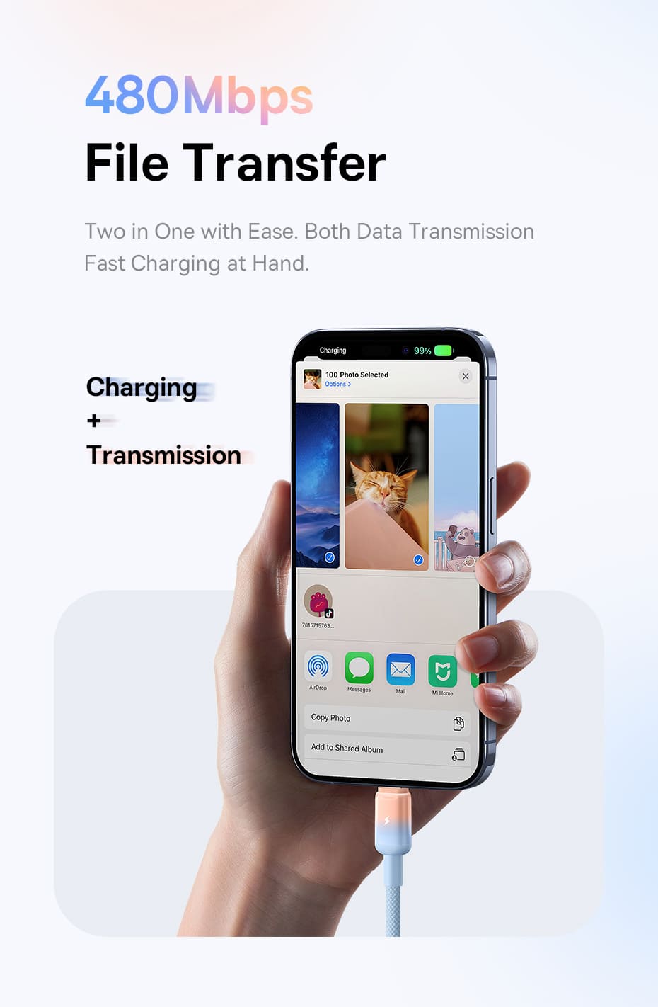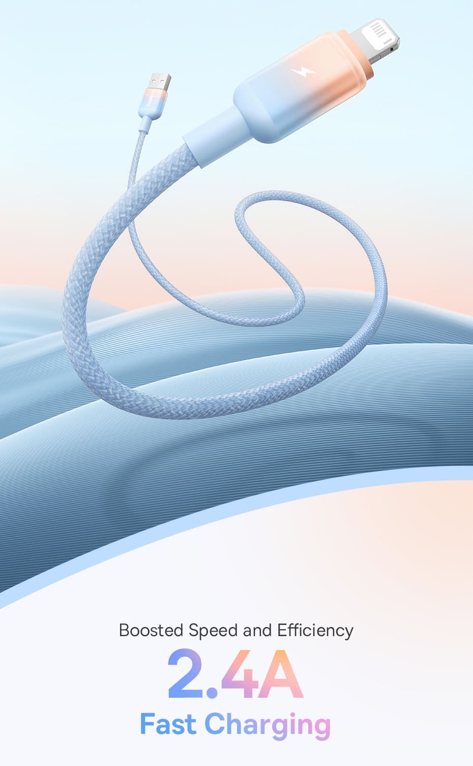 🎨 Thiết Kế Chuyển Màu Gradient Độc Đáo: Tạo nên sự khác biệt với hiệu ứng chuyển màu (gradient) đầy phong cách trên đầu cắm. Đây không chỉ là một sợi cáp sạc, mà còn là một phụ kiện thời trang giúp bạn thể hiện cá tính riêng.