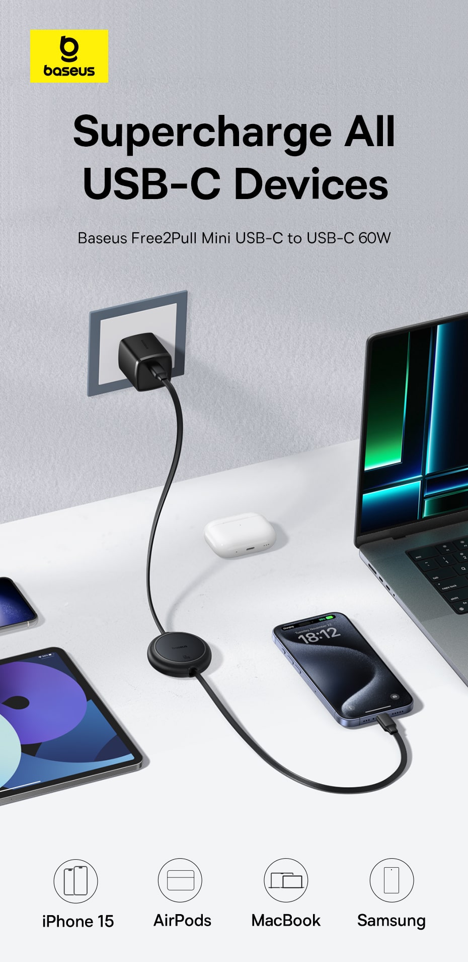 | Tên | Cáp Sạc Nhanh Baseus Free2Pull Mini Charging Cable Type-C to Type-C 60W |