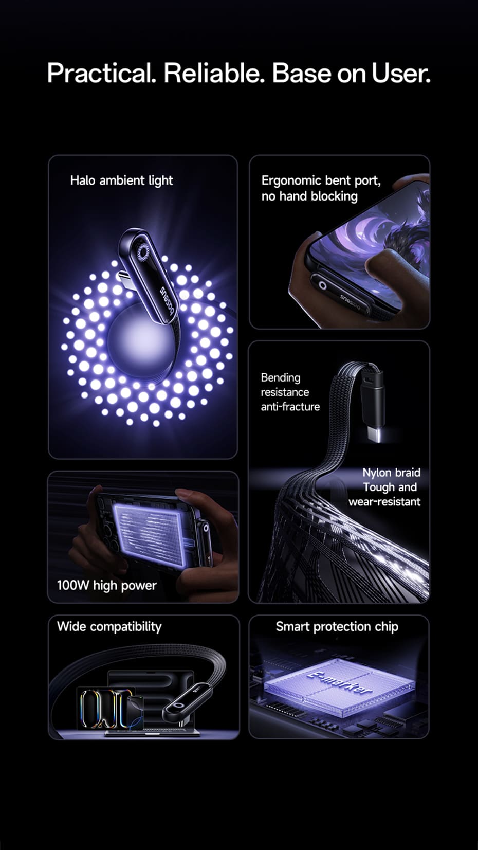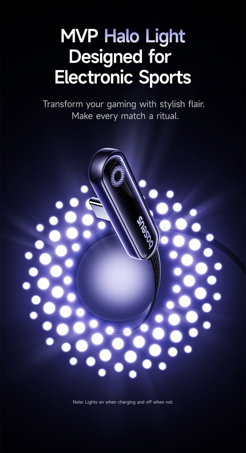 ✨ Đèn LED Halo "MVP" Đậm Chất Gaming: Đầu cắm được tích hợp vòng đèn LED Halo với hiệu ứng ánh sáng độc đáo, không chỉ giúp bạn dễ dàng xác định vị trí sạc trong bóng tối mà còn tạo nên một điểm nhấn phong cách, đồng bộ với dàn máy gaming của bạn.