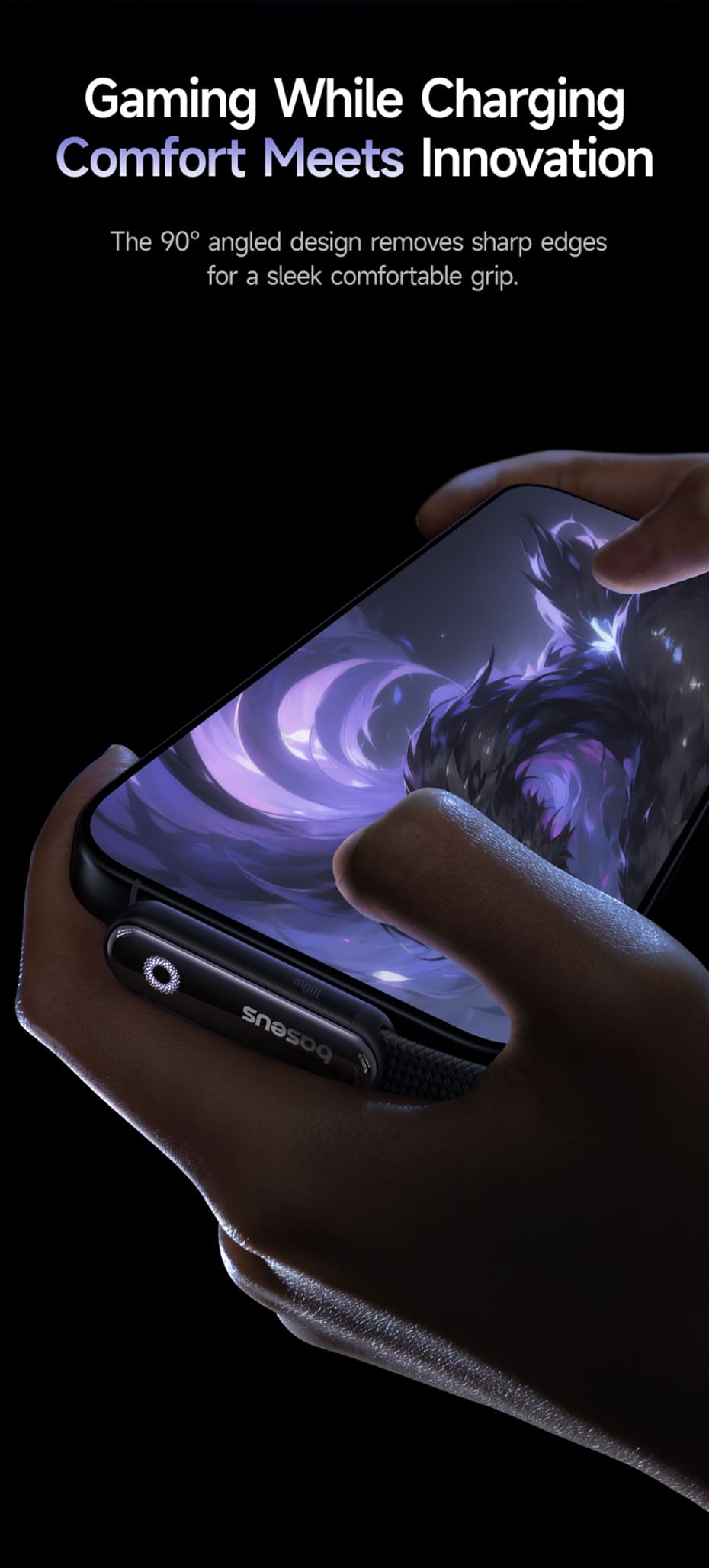 🎮 Thiết Kế Đầu Gập 90° Siêu Mỏng, Chơi Game Không Vướng Tay: Đây là tính năng nổi bật nhất! Đầu cáp được thiết kế gập góc vuông 90 độ (chữ L) và siêu mỏng, giúp dây sạc nằm gọn dọc theo cạnh máy. Hoàn toàn không gây cấn hay vướng víu, cho cảm giác cầm nắm thoải mái nhất khi bạn chơi game hoặc làm việc.
