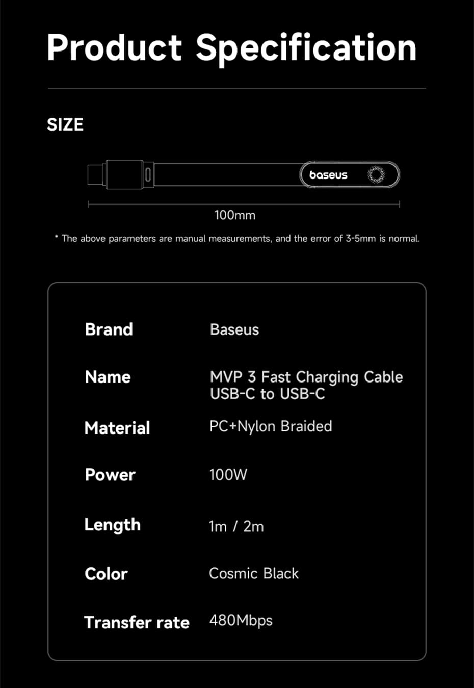 | Tên | Cáp Sạc Nhanh Baseus MVP 3 Fast Charging Cable Type-C to Type-C 100W |