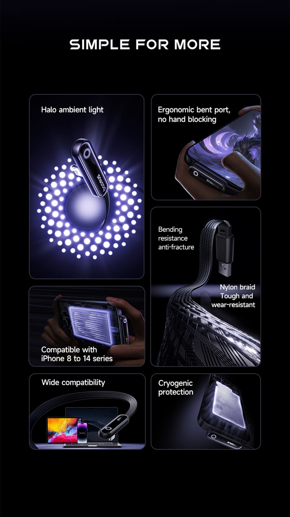 ✨ Đèn LED Halo "MVP" Đậm Chất Gaming: Đầu cắm được tích hợp vòng đèn LED Halo với hiệu ứng ánh sáng độc đáo, không chỉ giúp bạn dễ dàng xác định vị trí sạc trong bóng tối mà còn tạo nên một điểm nhấn phong cách, đồng bộ với dàn máy gaming của bạn.