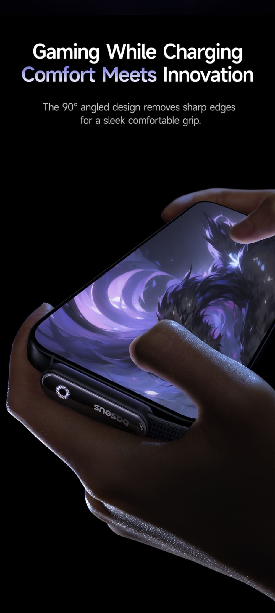 🎮 Thiết Kế Đầu Gập 90° Siêu Mỏng, Chơi Game Không Vướng Tay: Đây là tính năng nổi bật nhất! Đầu cáp được thiết kế gập góc vuông 90 độ (chữ L) và siêu mỏng, giúp dây sạc nằm gọn dọc theo cạnh máy. Hoàn toàn không gây cấn hay vướng víu, cho cảm giác cầm nắm thoải mái nhất khi bạn chơi game hoặc xem phim.