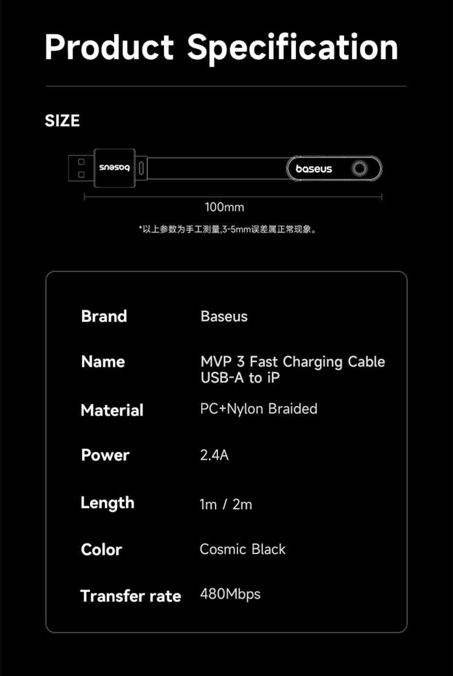 | Tên | Cáp Sạc Nhanh Baseus MVP 3 Fast Charging Cable USB to iP 2.4A |