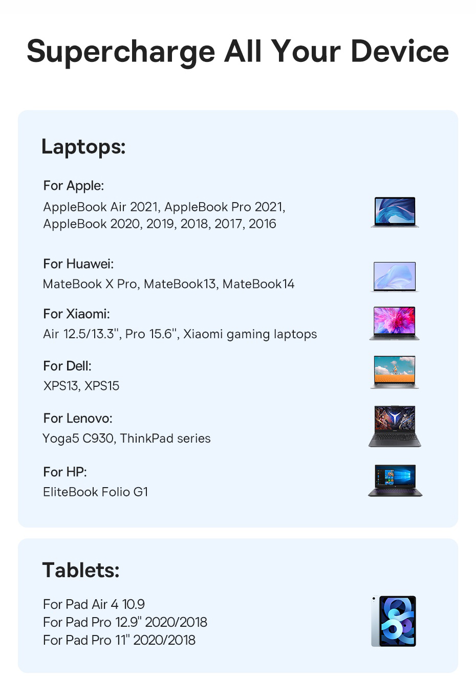 Tương Thích Rộng Rãi: Cáp hỗ trợ một loạt thiết bị sử dụng cổng Type-C, làm cho nó trở thành một phụ kiện đa dụng cho người dùng điện thoại di động, laptop và các thiết bị khác.