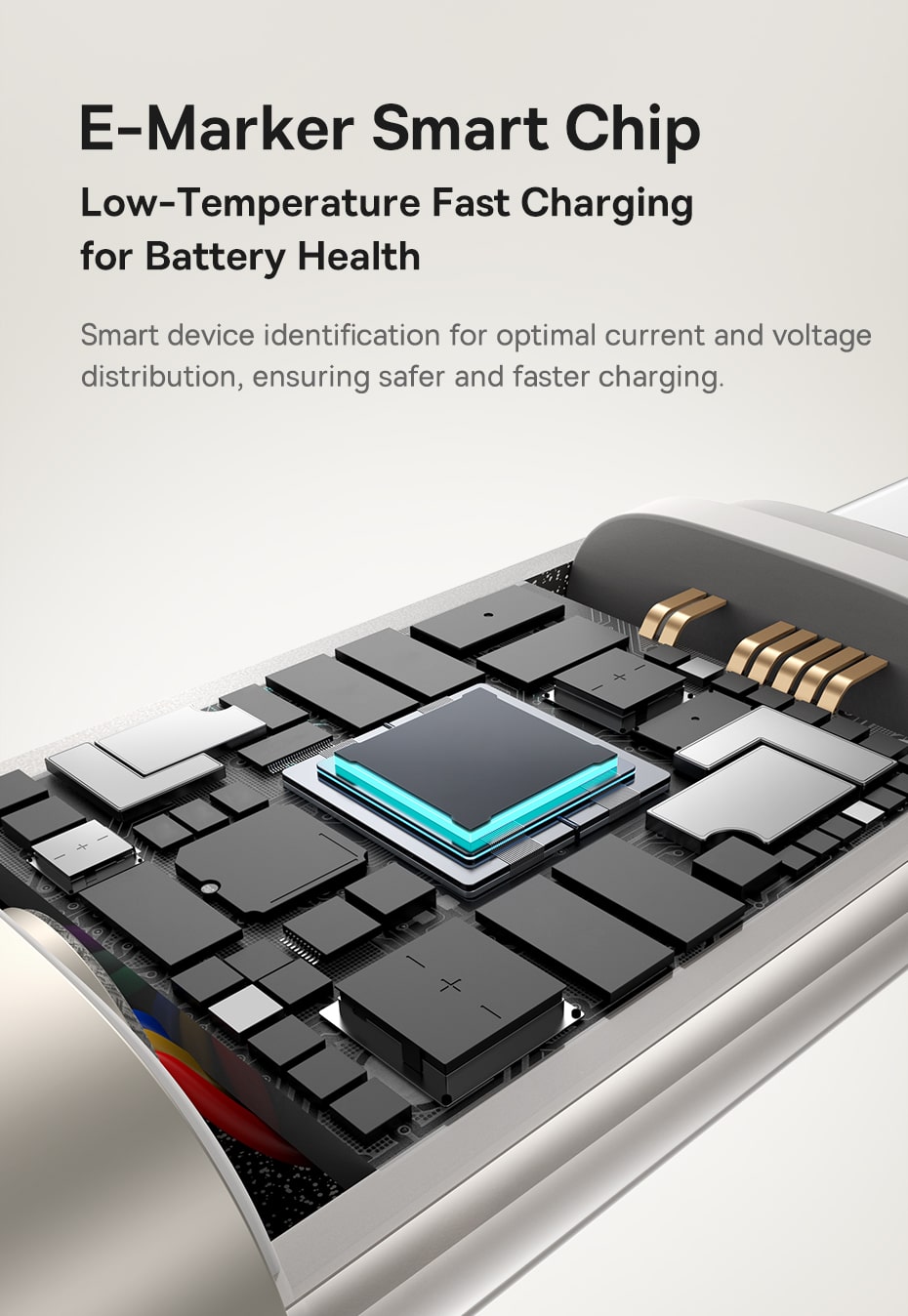 🛡️ Sạc An Toàn Với Chip E-Marker: Tích hợp chip E-Marker thông minh, tự động điều chỉnh dòng điện để tối ưu tốc độ và bảo vệ pin thiết bị của bạn khỏi tình trạng quá nhiệt hay quá tải, giúp duy trì sức khỏe pin lâu dài.